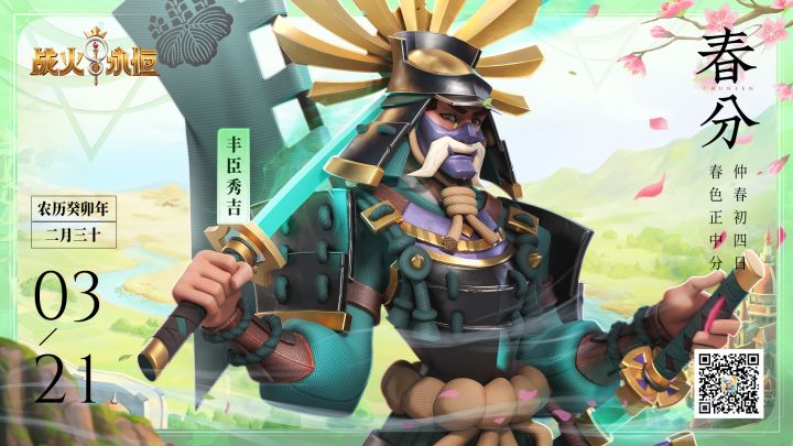 春分已至。过了今日,白昼就会比夜晚长了。近来清晨天亮的很早,能看见落日余晖。白昼变长,总觉得好像有更多事情需要去做,领主大人也是这样吗?这次的节气专栏我们邀请到了丰臣秀吉。他本是平民出身,仰赖自身才华一步步登上权力之巅,丰臣秀吉的骄傲与尊严是自己赢来的。在诺伦大陆,他仍身着武士盔甲,头戴华丽的大铠,手持双刀,在战斗中回忆着属于他的峥嵘岁月。 春意渐暖,诺伦大陆的建设即将收尾。与领主大人们见面的