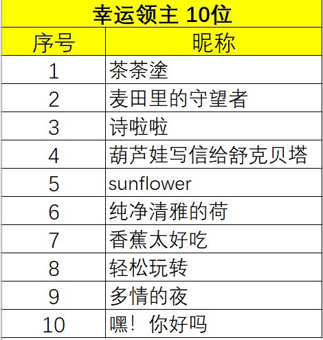 开奖啦!非常感谢大家的热情支持!本次活动的获奖名单(下图所示)请名单内的领主,添加TAP官方QQ交流群:806919819 并联系管理:小水龙凭个人主页截图领取京东卡奖励。添加时请记得备注渠道名称及社区昵称,如无备注将无法通过验证。如果没有及时通过好友添加也不用着急,我们会尽快进行处理。此次最晚领奖时间:2022年12月14日!(别误时啦!!!)其他没有中奖的领主们也不要灰心!请持续关