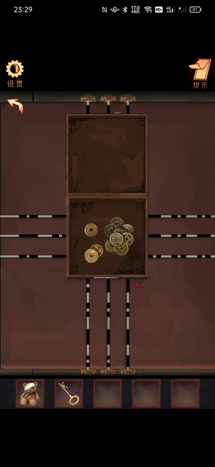 点击左下角,根据左上的图(即下图)打开箱子装上转轮问工作人员,根据下图(每个图有多少种颜色,得出点击的顺序)得到缆车票,将票给工作人员………………………………………………神婆家点击左下角,通过小游戏,得到潮湿的木板,将木板放在楼梯缺口处,解锁二楼通过窗户看到院子的特殊标记,再到一楼查看各物品的数量,得到密码——3641,打开箱子,得到红墨水将红墨水倒在地图上,根据显映出来的图案,将