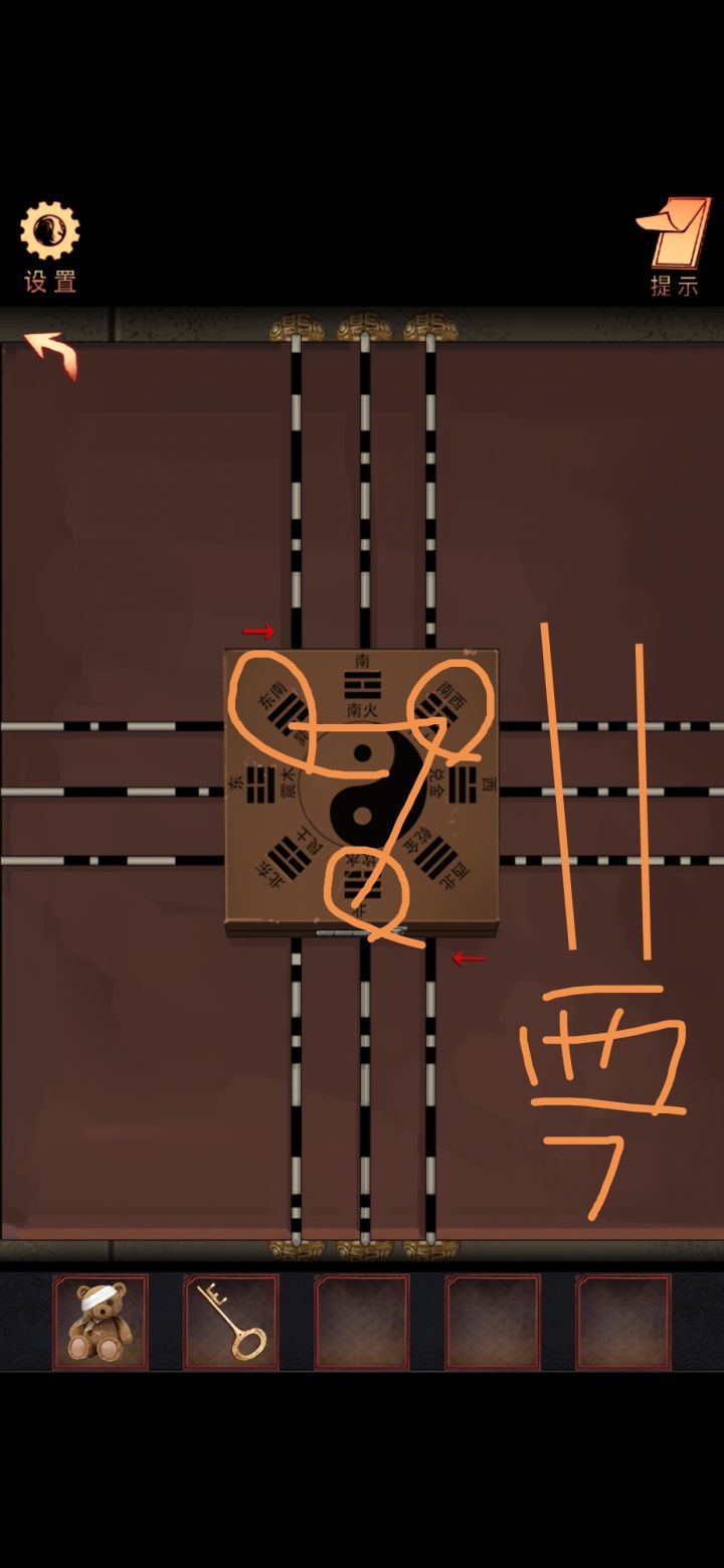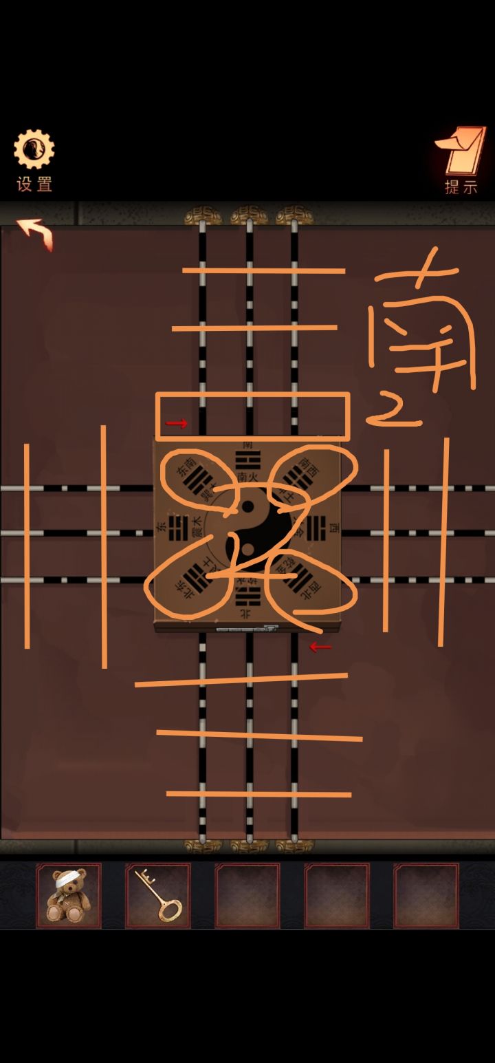 第二章 八卦盘 北是固定的0 密码输入中间那一行 按照箭头方向看 密码是 东1南2西7