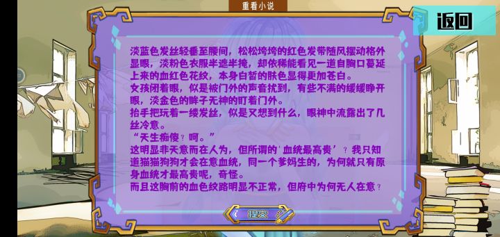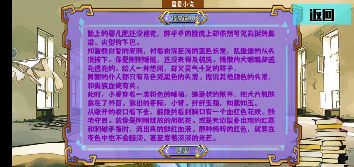 如果这个游戏在十年前让我碰见,我一定会跟我一起写小说的朋友们分享。就是可惜。这个游戏内容核心是要我们玩家去写作提升的。既然如此为什么不搞一篇真的网文开头呢?真的回顾到十年前十多年前去搞波从网文热潮开始的创作必写,也是一波回忆(?。它可以是:我已经完成了这个任务我们能永远在一起了!不,我是骗你的就为了你的宝物才这样的。但现在你已经没用了,下悬崖吧。这种苏落找妈式的穿越。或者是:一