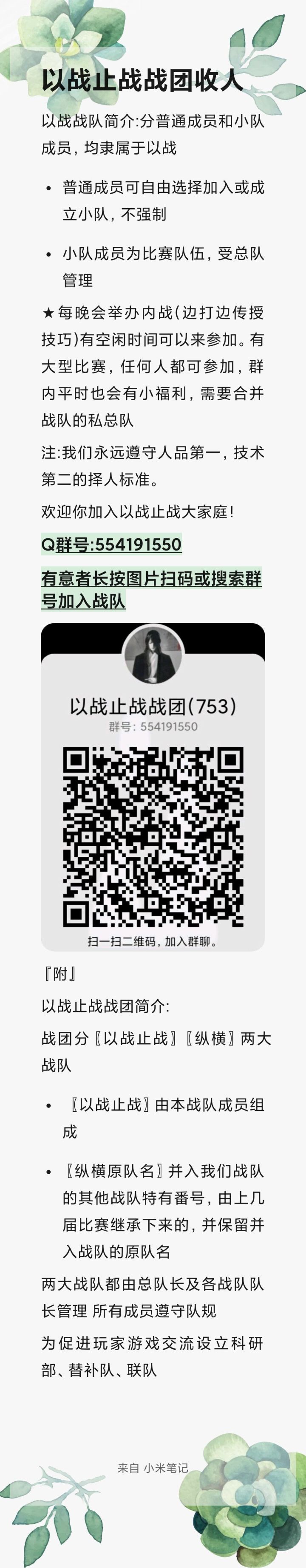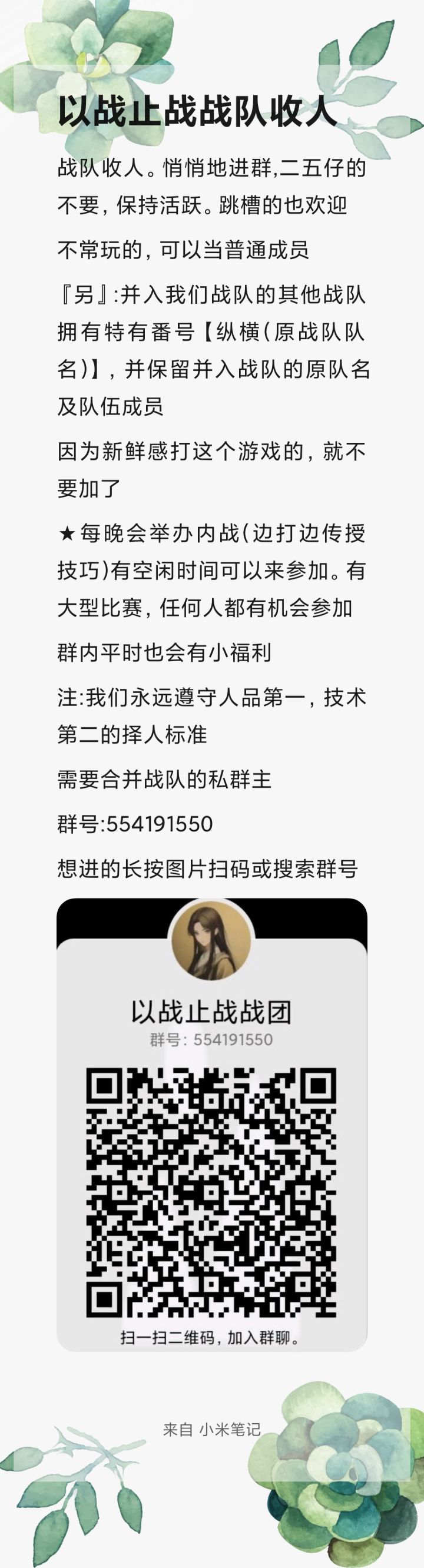 缺队员的兄弟们可以看一看,欢迎加入以战大家庭