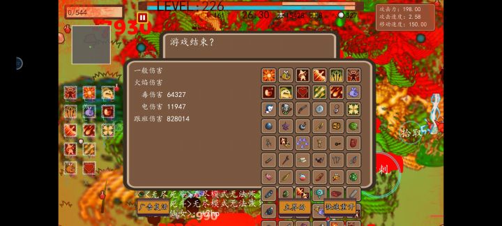 打完死神后,选择了技能,因为技能不好看了一会广告,结果就出不去了,右下角的下一关按钮无效了