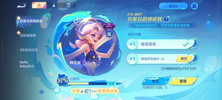 和我一起砍价!免费获得阿古朵史诗皮肤吧! 邀请码: CJVV77点击链接:https://tl.honorofkings.com/v2/tl/29134_1_FW7PIHiwfUO