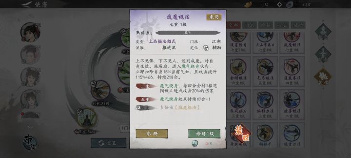 首先表明,版本强势唯一答案就是疯魔棍法,各位打不过就加入吧!本着想游戏百花齐放,各类武学相互克制的想法,我尝试了君山闪避流,君山反击流,主角暗器挂化劲主怼璇玑流,都以失败告终!有朋友告我我,把最高攻击给小福他心法免死,给赵四她有盾能抗,给大力他能嘲讽。带疯魔加单体的主角,这些前排伙伴也许能抗住第一轮爆发,集火干掉对面的疯魔主角,一般这样就能赢下这局。但是现在更多的朋友发现,疯魔配上腾蛇剑法这
