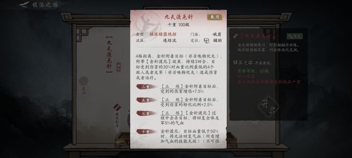 峨眉金针流绝招的核心设计是回血,镇派在回血的基础上增伤加强回血及伤敌,但存在严重缺陷,导致玩的人寥寥无几。作为辅助技能却是单体标记,很不容易触发到,一旦队友打不到或者已死亡,该绝招就等于白板,既不能打伤害也没有辅助效果,只能处于下水道。修改建议:方向一,仍以回血为主,但是金针目标是全体队友,附加一定比例的吸血,如20-25%,目标被金针附着队友击杀,回复一定聚气方向二,以辅助输出为主,随机