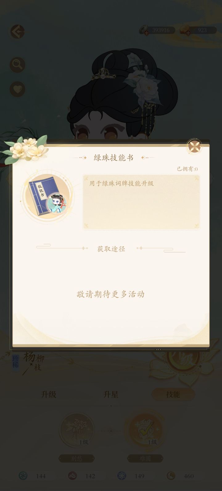 杨柳枝的词牌技能升级要绿珠的技能书