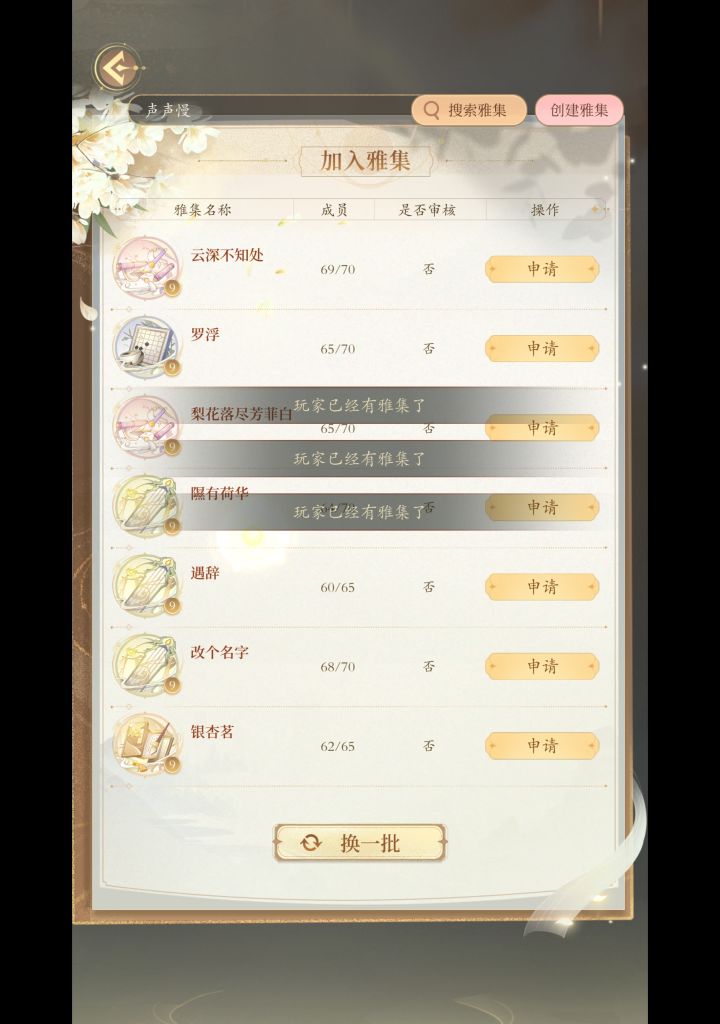 #万世镜 #万世镜bug 还以为我被踢出雅集了,但是进别的雅集又显示玩家已有雅集,,,,