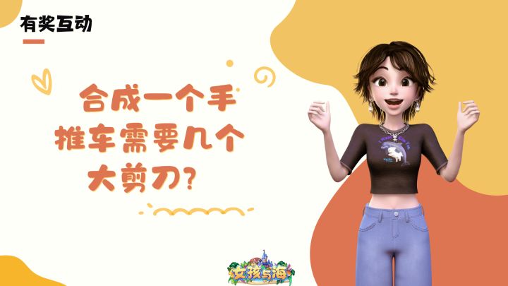 各位乐园主们下午好哇今天居然才周三过完今天还得上3天班/课月月赶紧给大家带来福利活动,让我们一起放松一下!合成一个手推车需要几个大剪刀?🎁评论+互动,抽3位乐园主送出蓝水晶*60,9月17日开奖。游戏ID+本题答案2024年9月11日-2024年9月17日17:001、禁止发布一切违反法律法规或社区规则相关的内容;2、禁止抄袭其他乐园