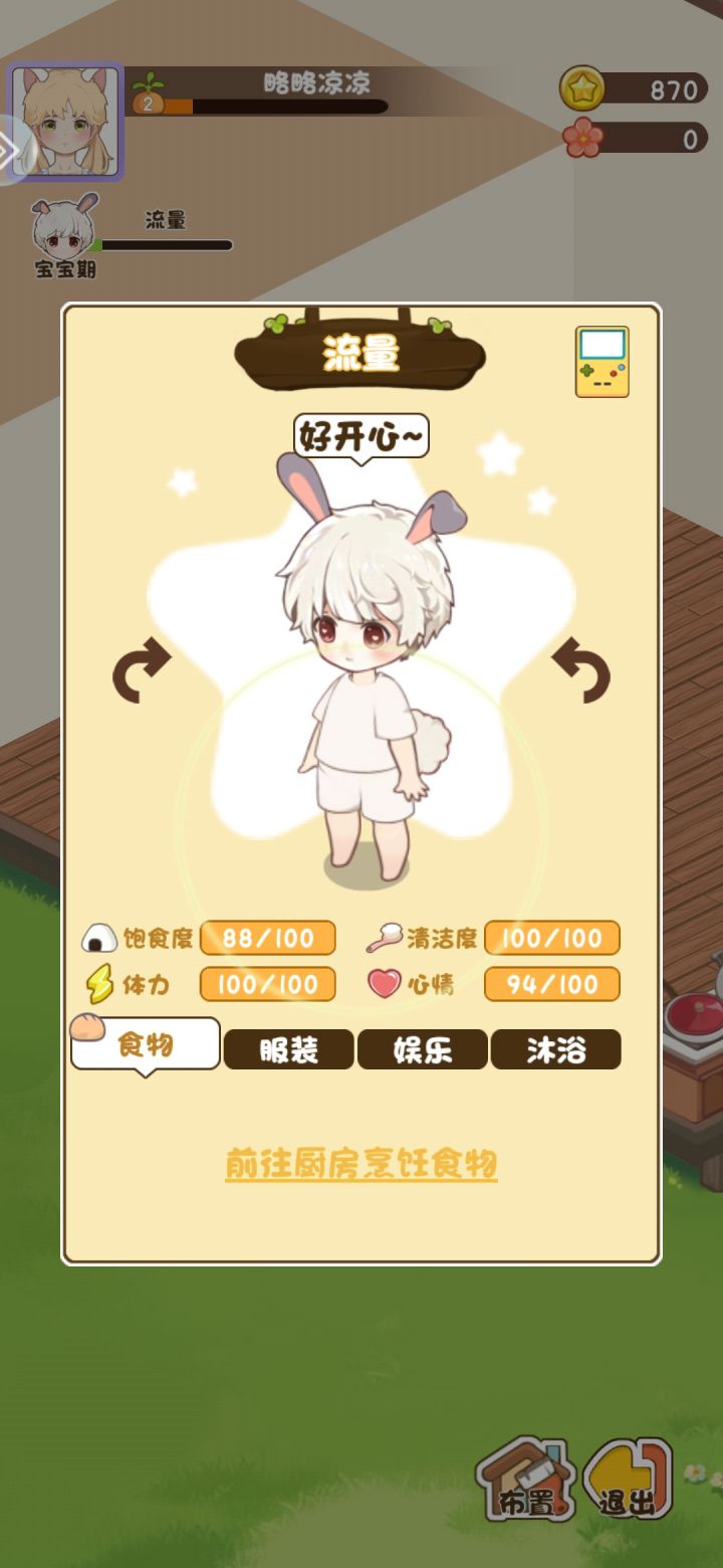 我喜欢的点:1.画风可爱 2.可以种田的休闲游戏3.可以养成 4.可以DIY成自己喜欢的样子测试中出现问题1.在过开启游戏机玩法会卡住2.家具椅子在收回后崽崽还保持坐椅子姿势,甚至会出现2个一样崽崽我的建议:1.希望可以处一个床睡觉可以恢复体能的功能2.希望尽快开启毕业3.丰富家具样式和外景装饰虽然出现了一些问题但我真的很喜欢这个游戏,加油(ง •̀_•́)ง(仅个人观点,不喜勿喷)