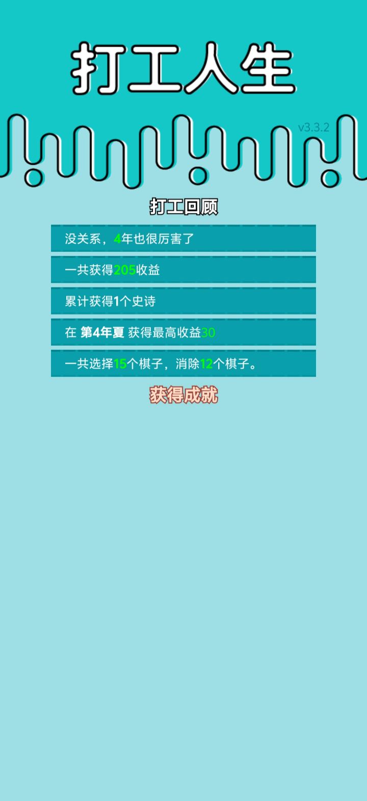 我打工坚持了4年。共获得205收益。共选择15个棋子,消除12个棋子。#单机游戏 #游戏推荐