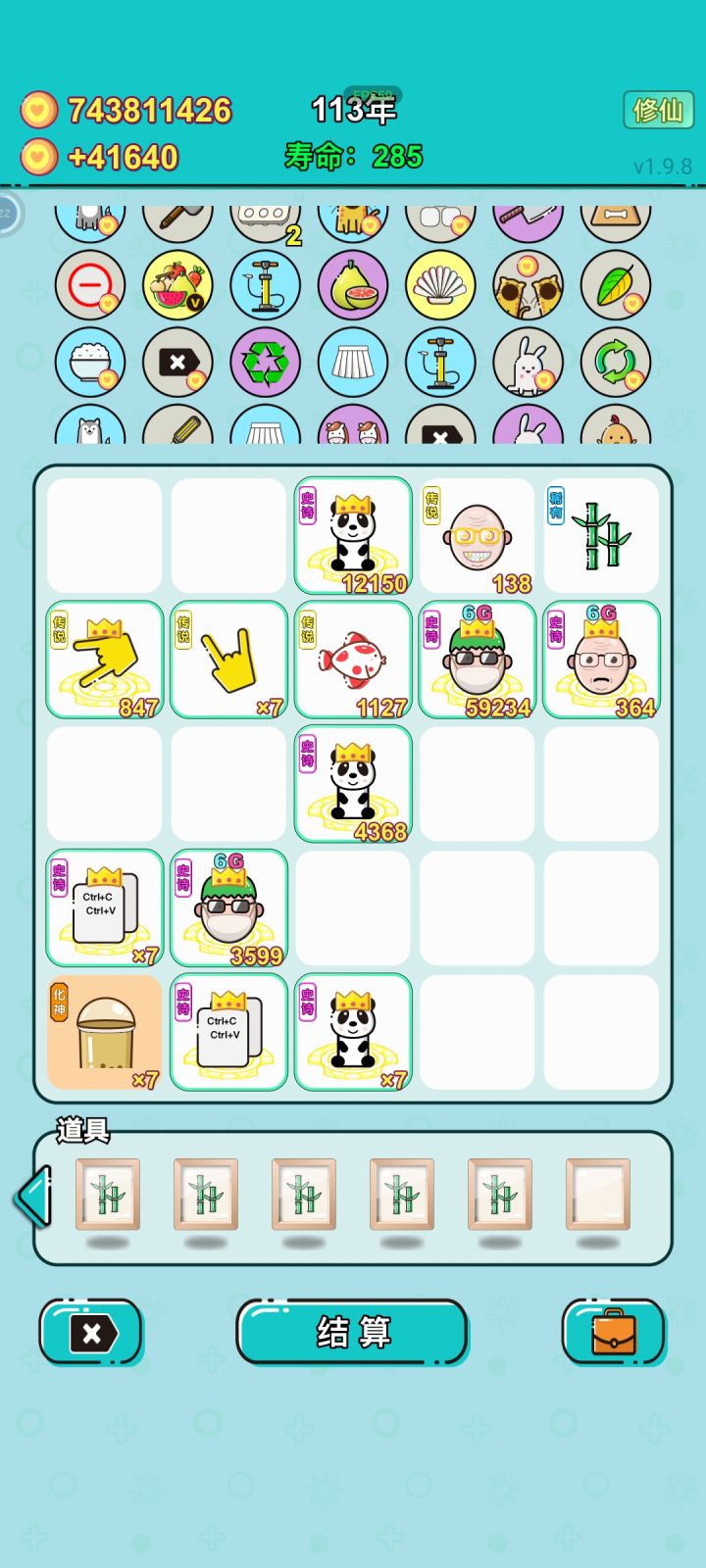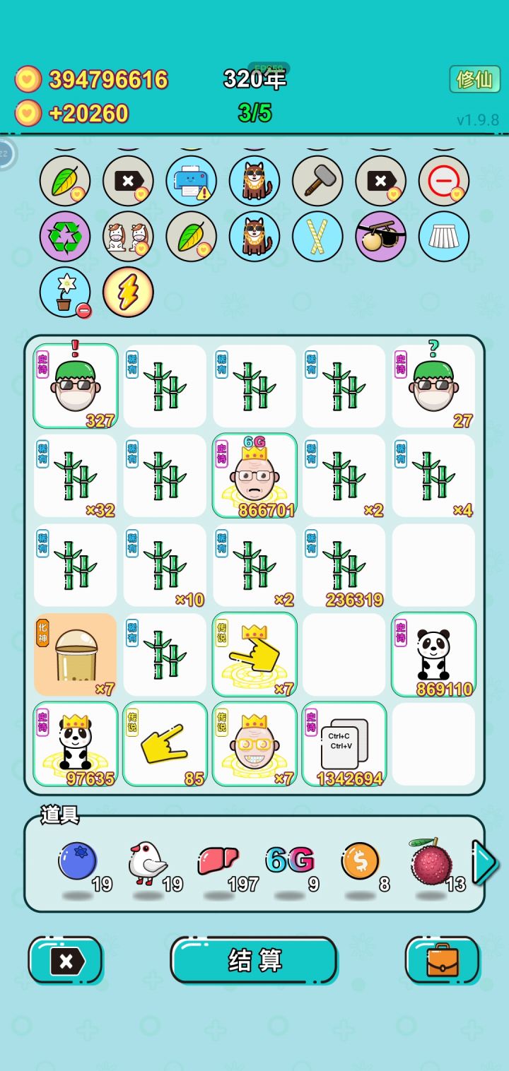 奶茶喝得太慢了,其他很好6g指我明星+指排手指养竹林,各2个其实够了。熊猫逐渐可以增加到3不用6g,6G很快竹林就全灭了,这局从鬼神布局转来的,搭多一个吸全场的老板很不错,以及首富。熊猫角色相邻有翻倍,所以6g配置在明星和老板上又有加成,非常完美!早知道修仙选冰箱了