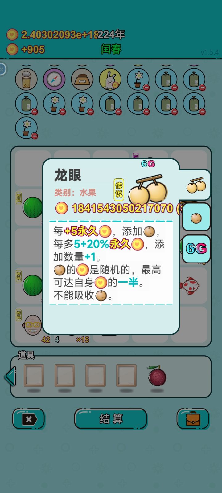 水果贵族无限指数提升攻略水果贵族 龙眼 6G 复制 刷几十个桂圆(让龙眼不容易刷出来),需要几条锦鲤好找史诗水果。开刷后棋子只拿好盲盒、增幅水果和史诗水果。主要是让史诗水果吸收桂圆再给龙眼提升可以指数刷。前两图为开刷配置,后三图为三年前的数值与配置。蜜柚吃龙眼虽然短期可以让钱快速增长,但不能指数提升。