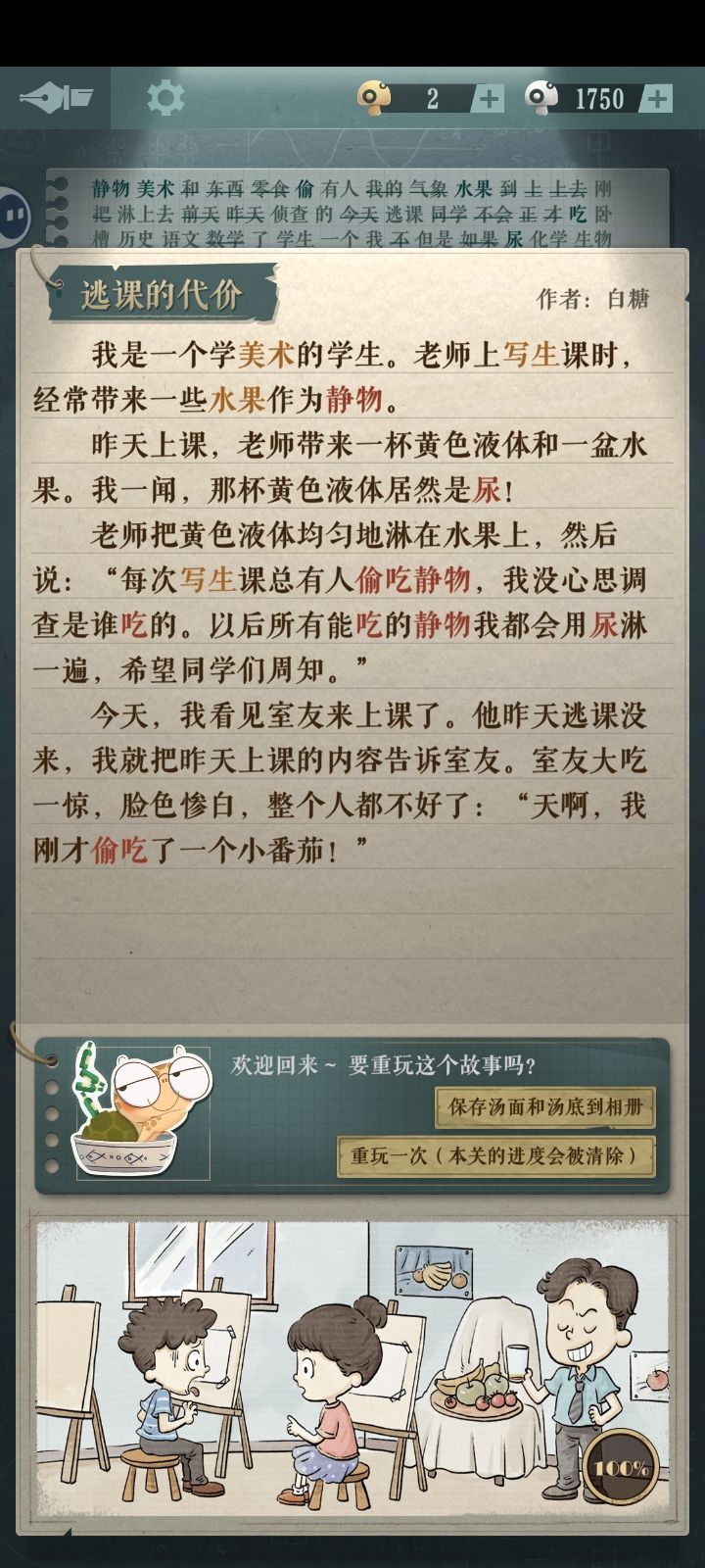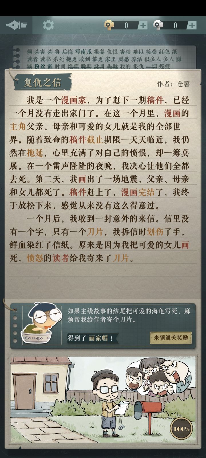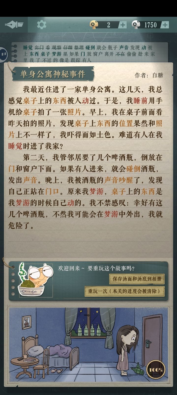 【我的独白】全攻略前两张是前奏正式关从第三张开始快速通关方法:只需要写红色字体的词语#海龟蘑菇汤