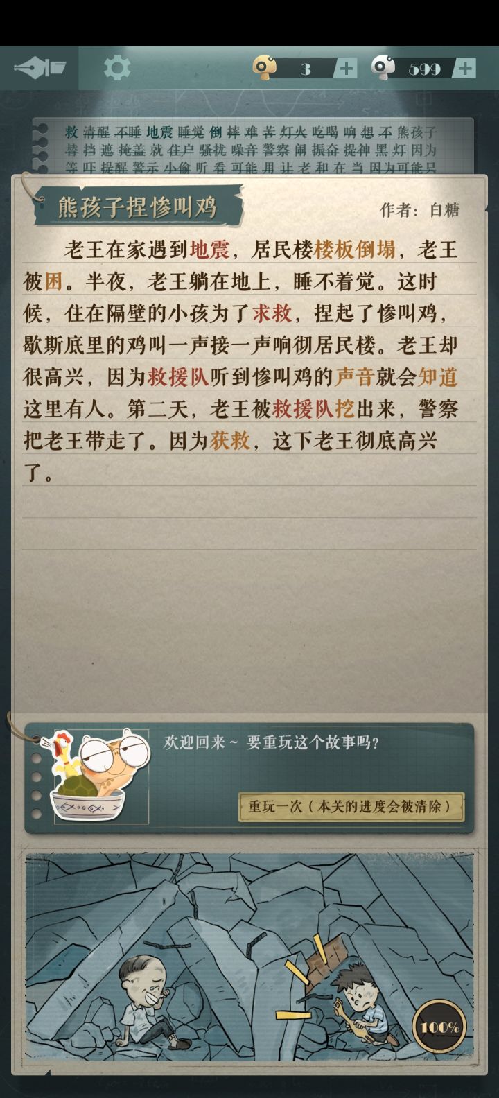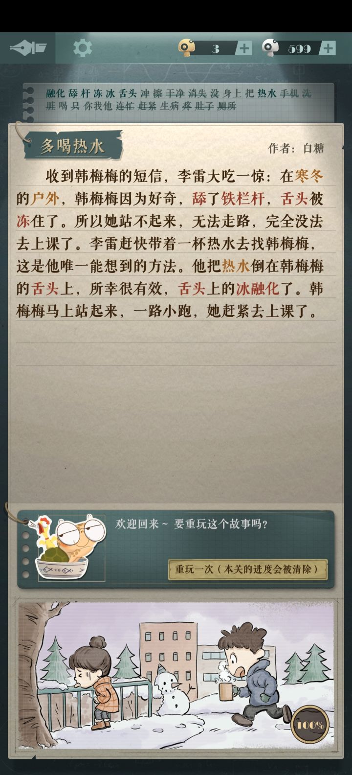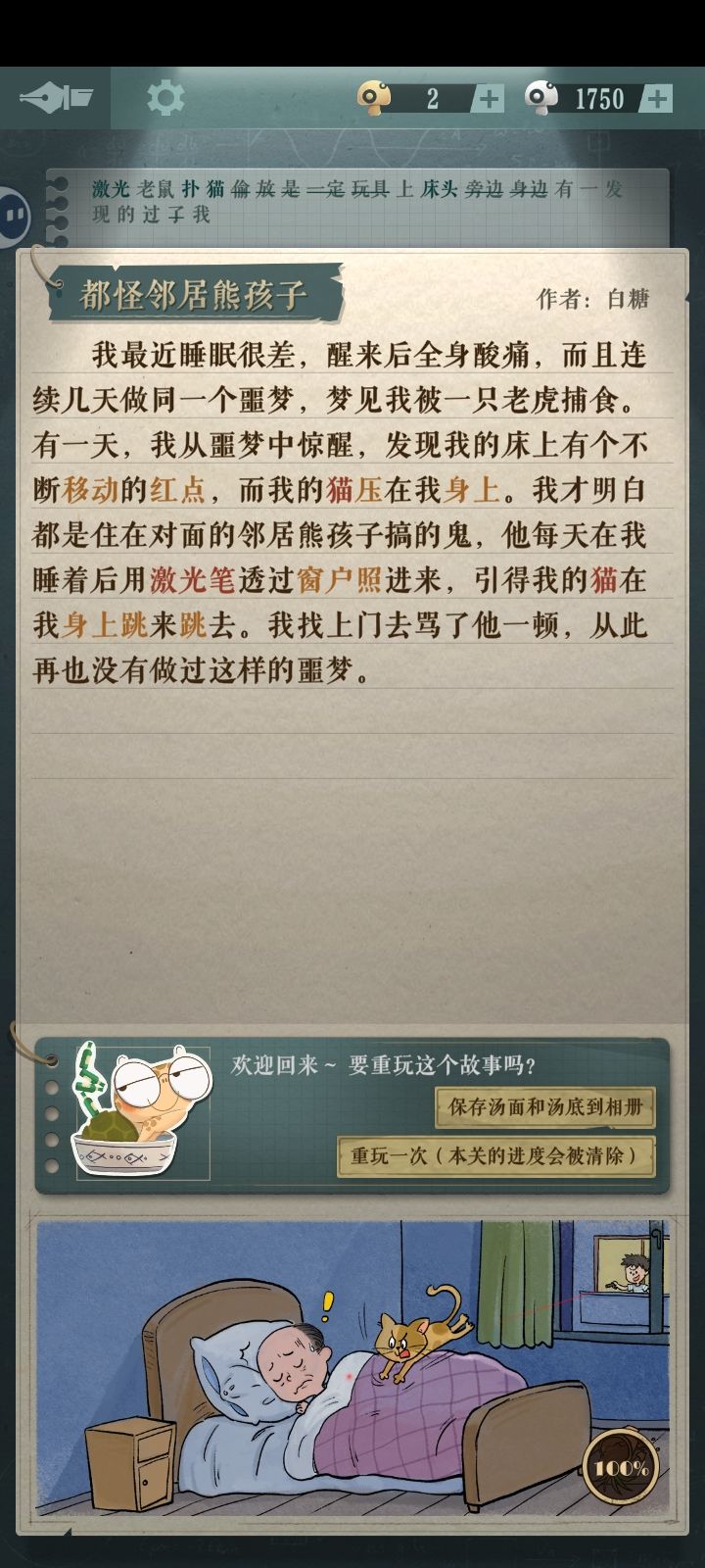 【我的独白】全攻略前两张是前奏正式关从第三张开始快速通关方法:只需要写红色字体的词语#海龟蘑菇汤