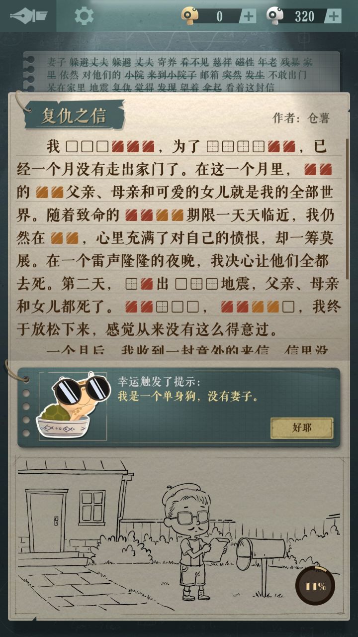 复仇之信这个故事中里面出现了可爱的女儿,但是触发的提示却说自己是个单身狗。是搞错了吗?