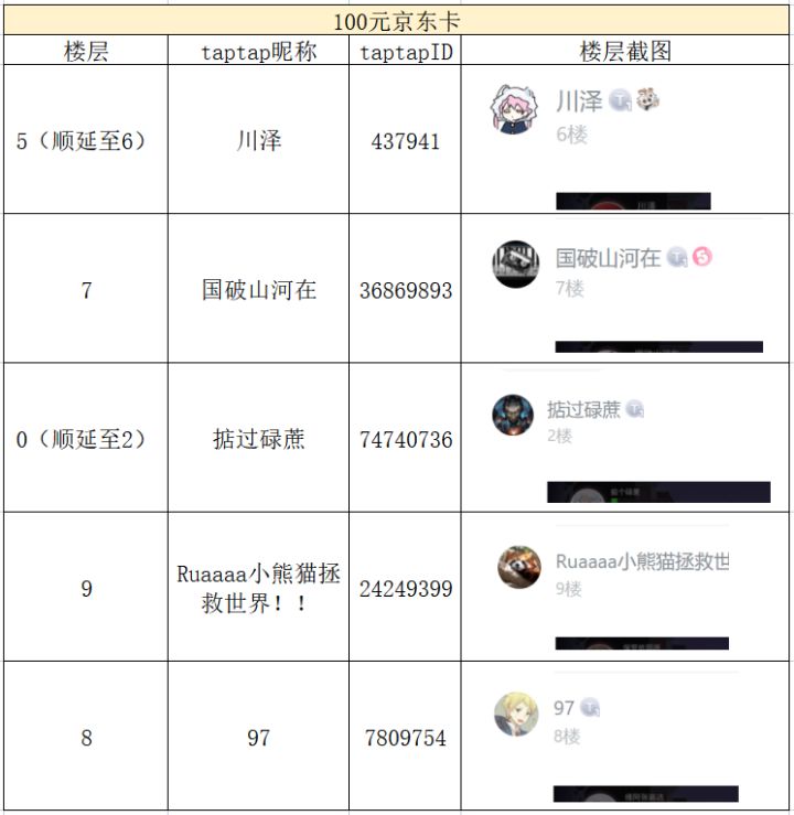 6.30开奖:截止2022/06/29/17:00,共计留言9层,因此我们的抽奖范围是「1-9」,抽奖结果均使用随机数生成器产生恭喜以下调查员获得奖品!----------@川泽 TapTapID:437941@国破山河在 TapTapID:36869893@掂过碌蔗 TapTapID:74740736@Ruaaaa小熊猫拯救世界!! TapTapID:24249399@97 Tap