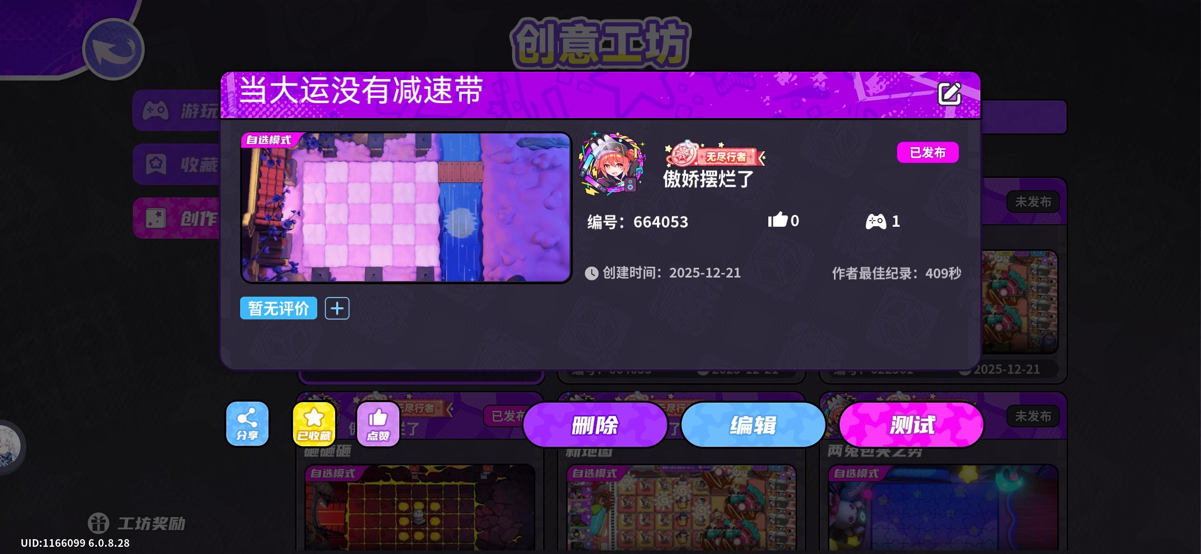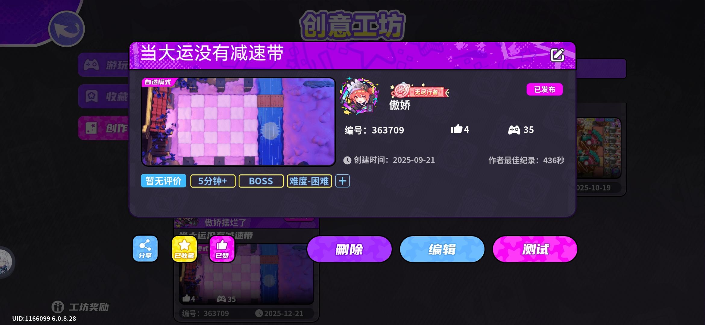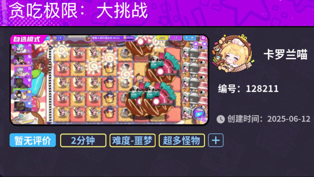 这是一场极其考验贪吃天使的使用的挑战: 1️⃣能量饮料被算好恰好可以完成挑战 2️⃣一旦失误,没有最大化吃掉怪物就会失败 挑战者需要熟练运用贪吃天使的以下特性: 1️⃣大招第一下只能吃一个怪物,适合对付落单怪物;第二下可以吃多个怪物,适合对付成群怪物 2️⃣移动时动作太慢可能导致不能吃到全部怪物 3️⃣贪吃天使的高血量可以争取时间和聚拢怪物 挑战者啊,你准备好了吗? 地图名: 贪吃极限:大挑战 地