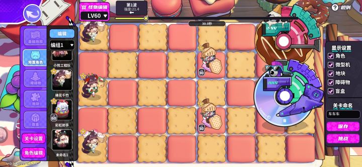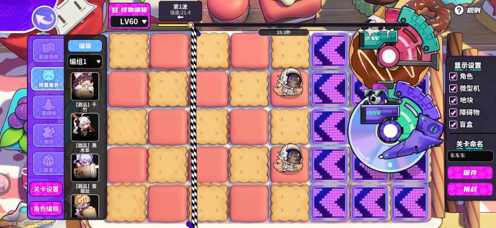 考虑到地图一前期小怪波次太长,大部分时间浪费到小怪波很难体验打boss,所幸地图二直接删除小怪波次直接来到boss波游戏改为采用提前部署,整体游玩时间变短,也因为是提前部署,可以直接禁用换位地图一本身想要让人玩到更多平时玩不到的东西,几乎把所有虹角色禁掉反而游玩体验变差,地图二直接放出雪人雪糕,可乐等机制角色,月,鲨鱼等弱势角色放出,但是大将彩虹糖塔菲之类的无脑纯数值角色依旧禁止,作为平衡统一