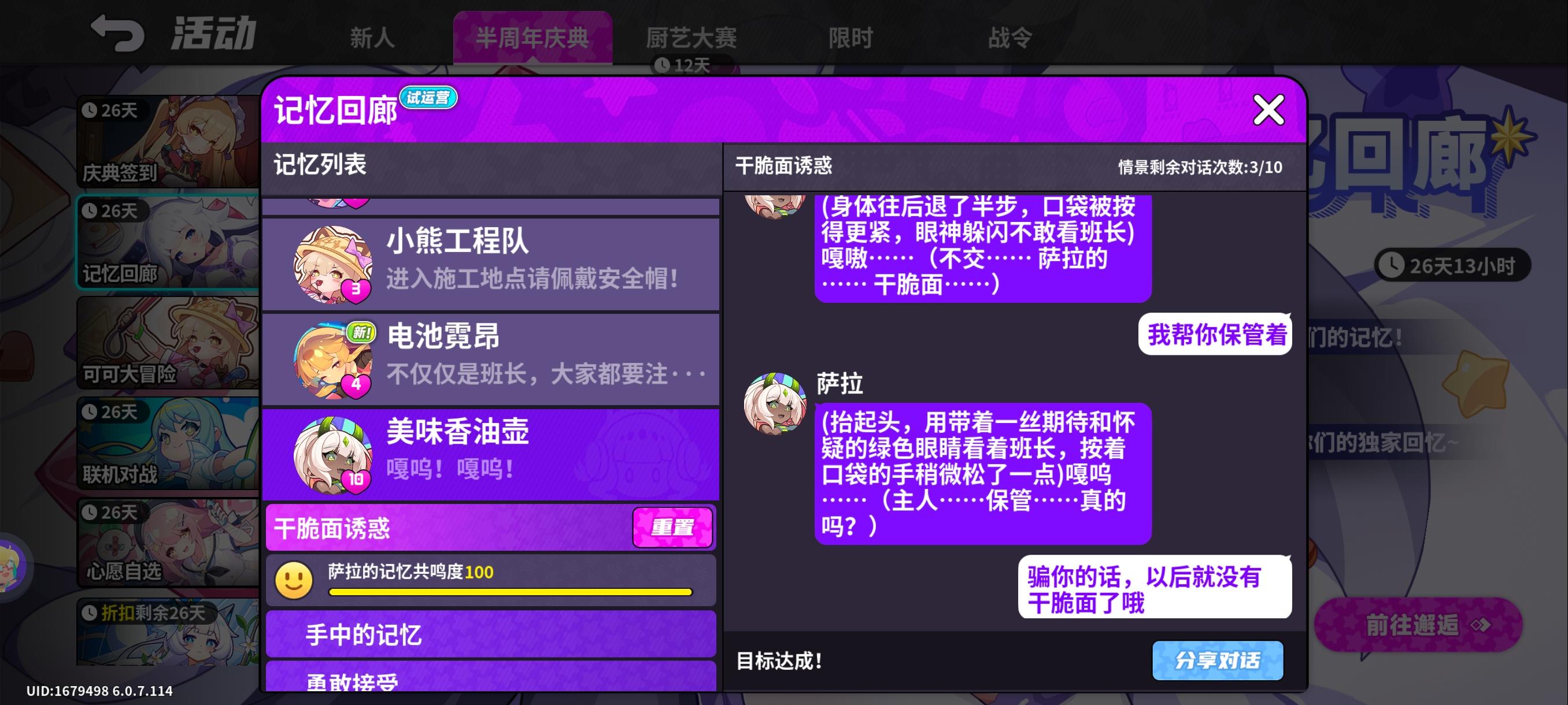《第一次分离》布露的泪水在青绿色长发上滚成晶莹的水珠,班长外套被抓出褶皱,忙碌的班长正尝试说服布露接受由蛟来照顾她布露:(死命摇头,整个人挂在班长手臂上)呜哇——不要!布露只要班长!难道你不喜欢蛟姐姐吗?布露:(低头揪着衣角,声音越来越小)布露、布露喜欢蛟姐姐的茶!但是班长不在的话...茶会苦的...我保证每天来陪你喝茶布露:(伸出小指,眼睛亮晶晶地期待)真、真的吗?那班长要喝布露泡的