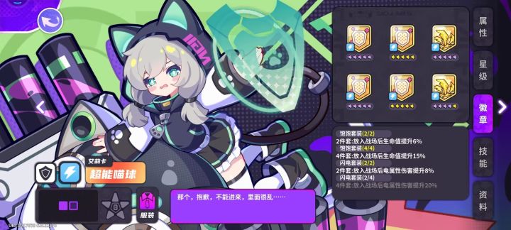 回顾四个篇章、、、发现,还缺点东西。比如延迟伤害直接伤害,立刻出伤,就是各种子弹造成的伤害。延迟伤害,出伤慢,就是灼烧伤害,感电伤害。炽热射线就有灼烧伤害,酷玩游戏机有感电伤害。延迟伤害有优点吗?徽章一般来说,输出角色带4个增伤+2个攻击。有例外吗?还真有。小爆妹带4个冷却。徽章也可凭个人喜好配置,适合自己的,才是最好的的。不是每个人都有5星角色,70级,