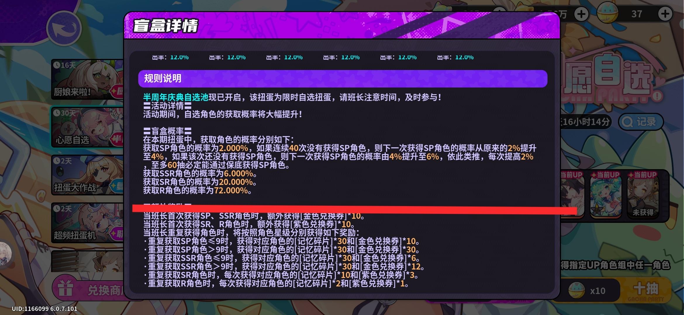 9个项目,除去签到的十抽,以及联机对战和记忆回廊两个没奖励的新功能,其余6个都是氪金活动……