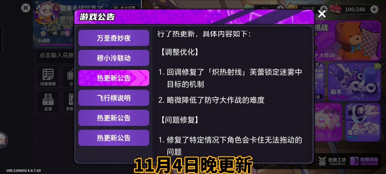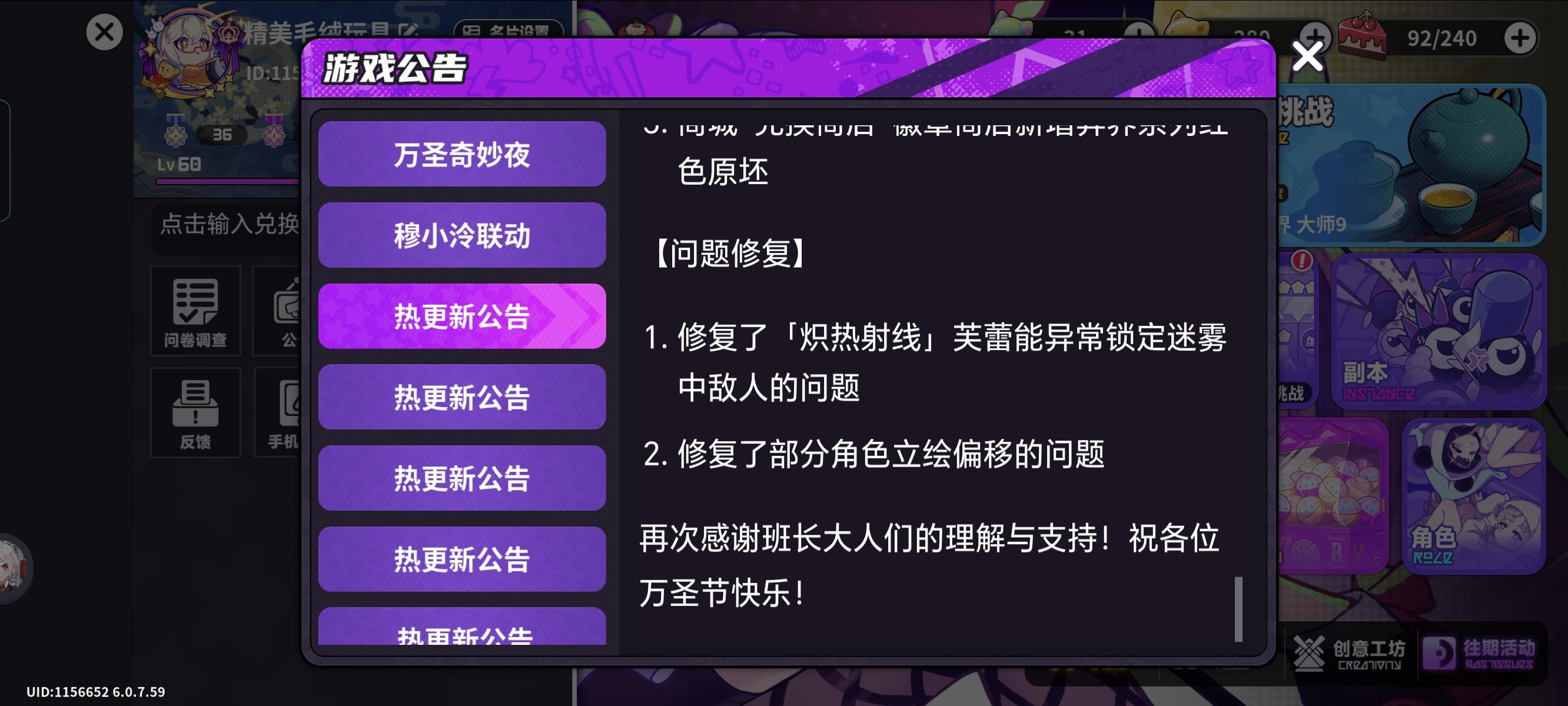 1:沟槽双up,老生常谈2:家园互换位置不能一键交互会一直卡住3:常驻高级普池没日免费一抽没有提示 常驻免费石头,周常同理4:主界面角色入场动画有bug,经常是别的角色的5:好多角色的生日皮都没有头像6:创意工坊音乐不全,比如广寒宫boss曲没有 敌人编组经常保存不了 boss能自定义血量就好了 赛车模式拖动编辑很反直觉7:建议以后每次更新界面都能选择使用老界面还是新界面,因为