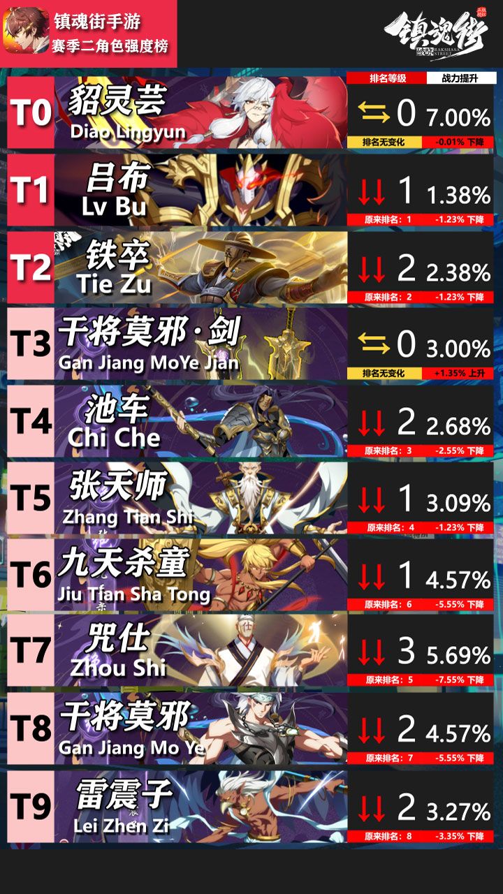 镇魂街这么多角色,哪些角色值得培养?看这一篇就够了!T0铁卒是真正的版本之子,真正的越战越强!攻击可以给敌方施加debuff,然后攻击debuff目标可以叠加伤害,触发斩断效果可以永久提升攻击,可以持续叠加,并且可以造成真伤!就是获取难度较大,白嫖党只能碰碰运气。氪佬可以搭配一个干将莫邪·剑,这玩意认主。T0.5池车是最容易获取和培养的强力C,龙棋降世活动白给一个,各种氪金项目基本都有送,比如