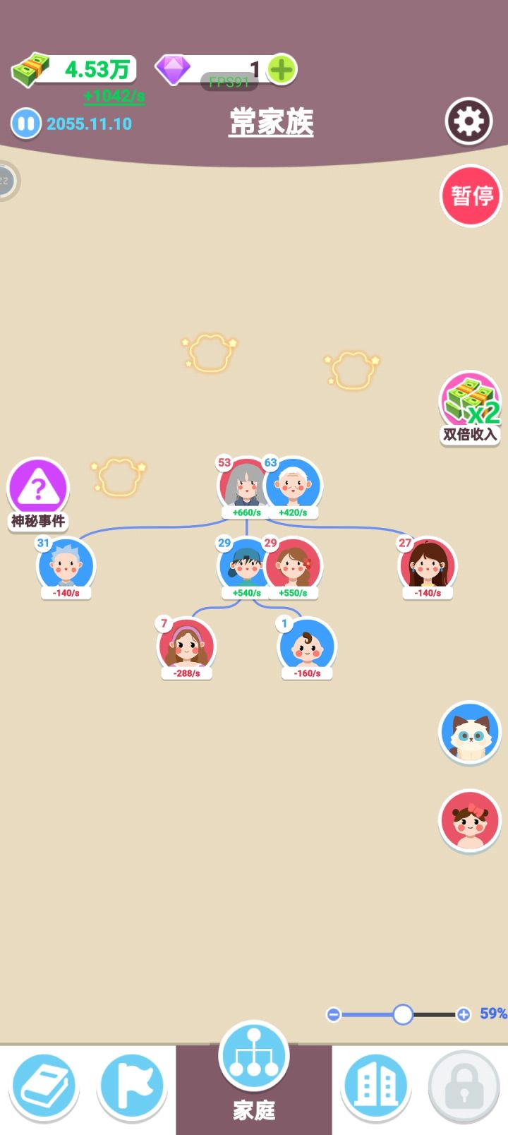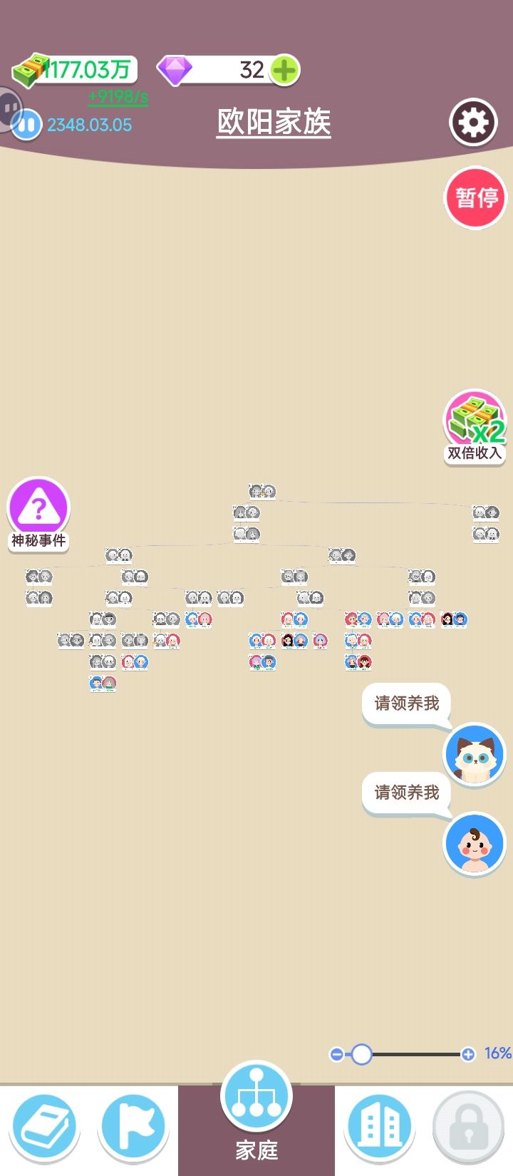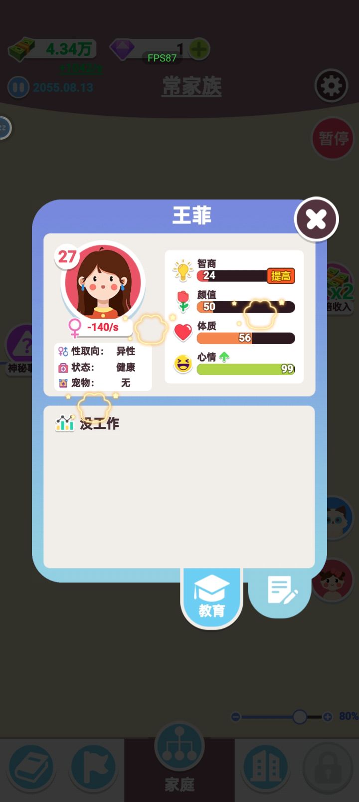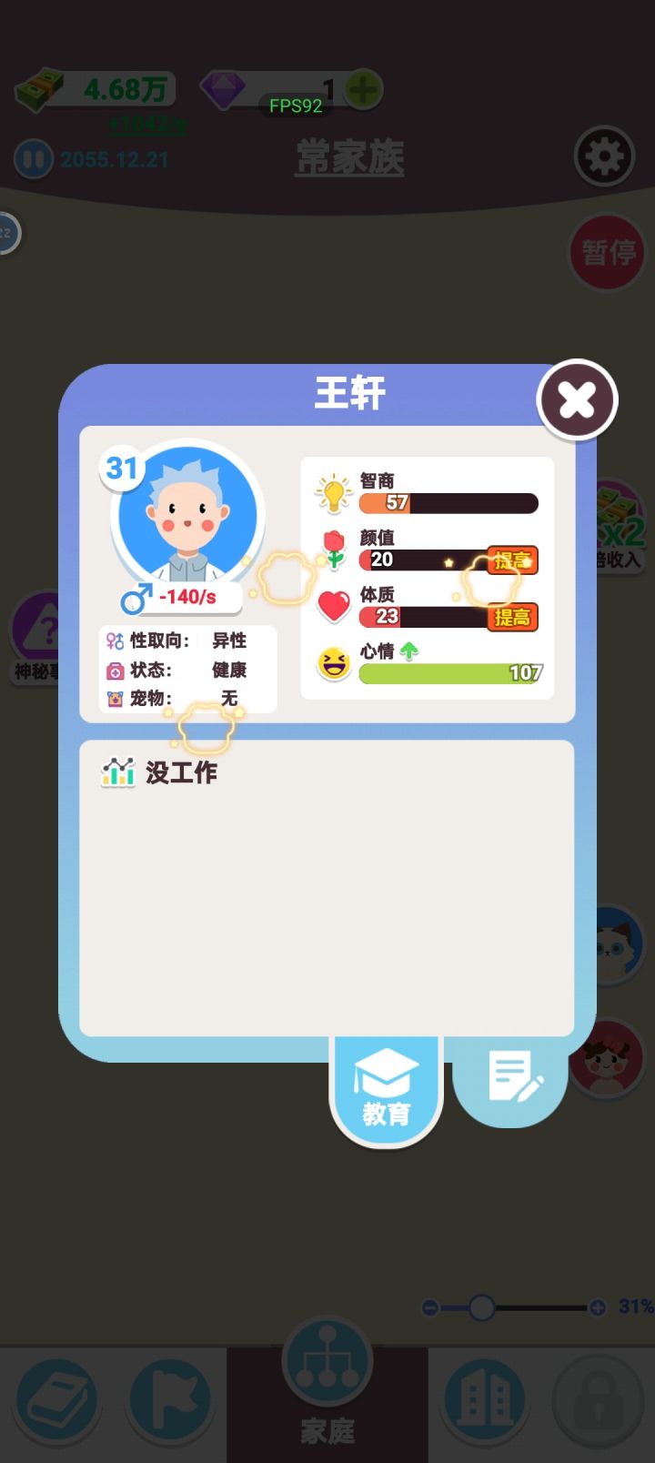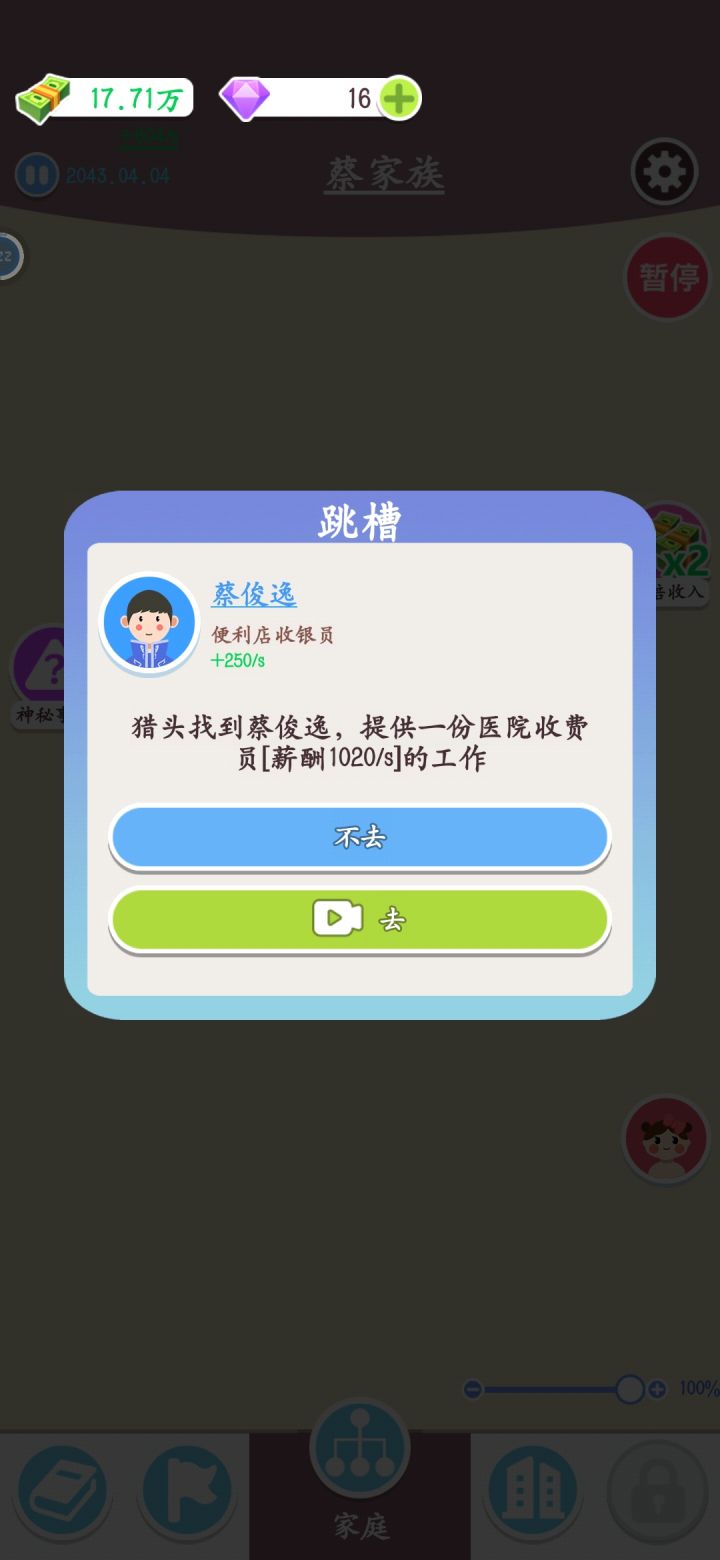 致敬传奇80大寿老人要生5胎 工作是不找的,孩子是两分钟要生一次的,家族要破产?那就再生点娃干活(啃老)不就好了 人多一点除了结婚和生育什么事件都不触发,视频开了两倍速,光触发生育事件就点了四十多秒 家族产业的工位加成也跟💩一样,空栏不显示什么专业有加成,等我按常理培养好人后放进去一看,嚯!理发店不要美发师 作者你是不是觉得这样设计很幽默?