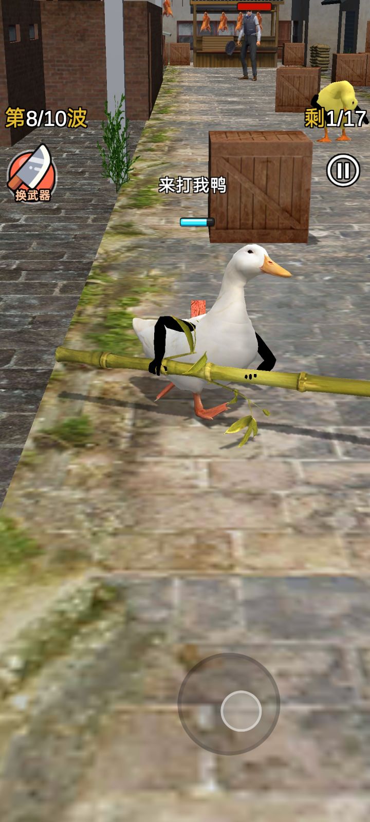 小鸭子肥肥的走起路来却一点都不含糊,扔砖头的姿势太帅了。打到老板的样子太解气了,笑声真是好魔性,一个挺神奇的yx