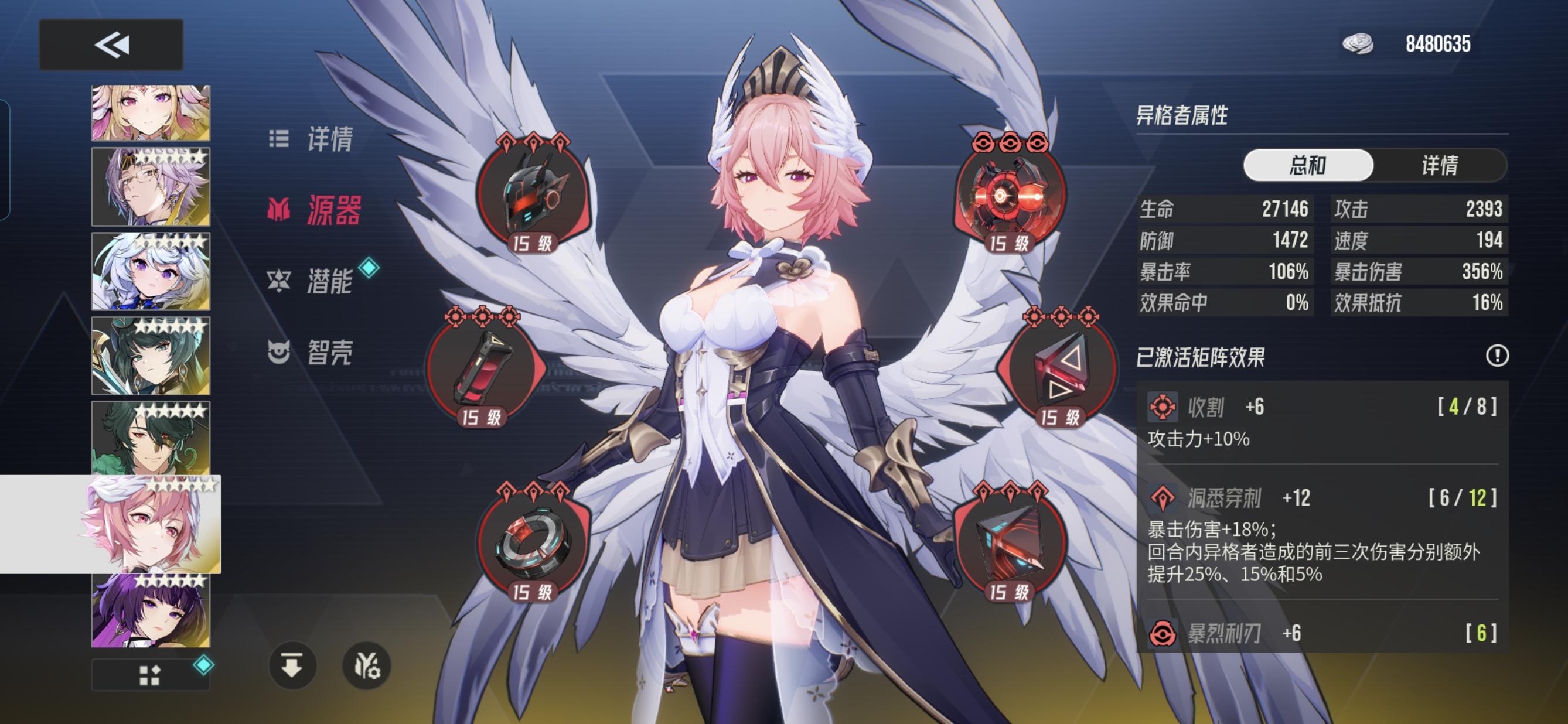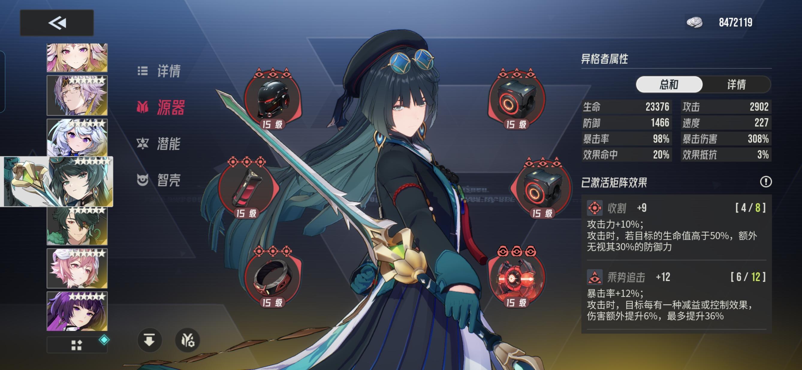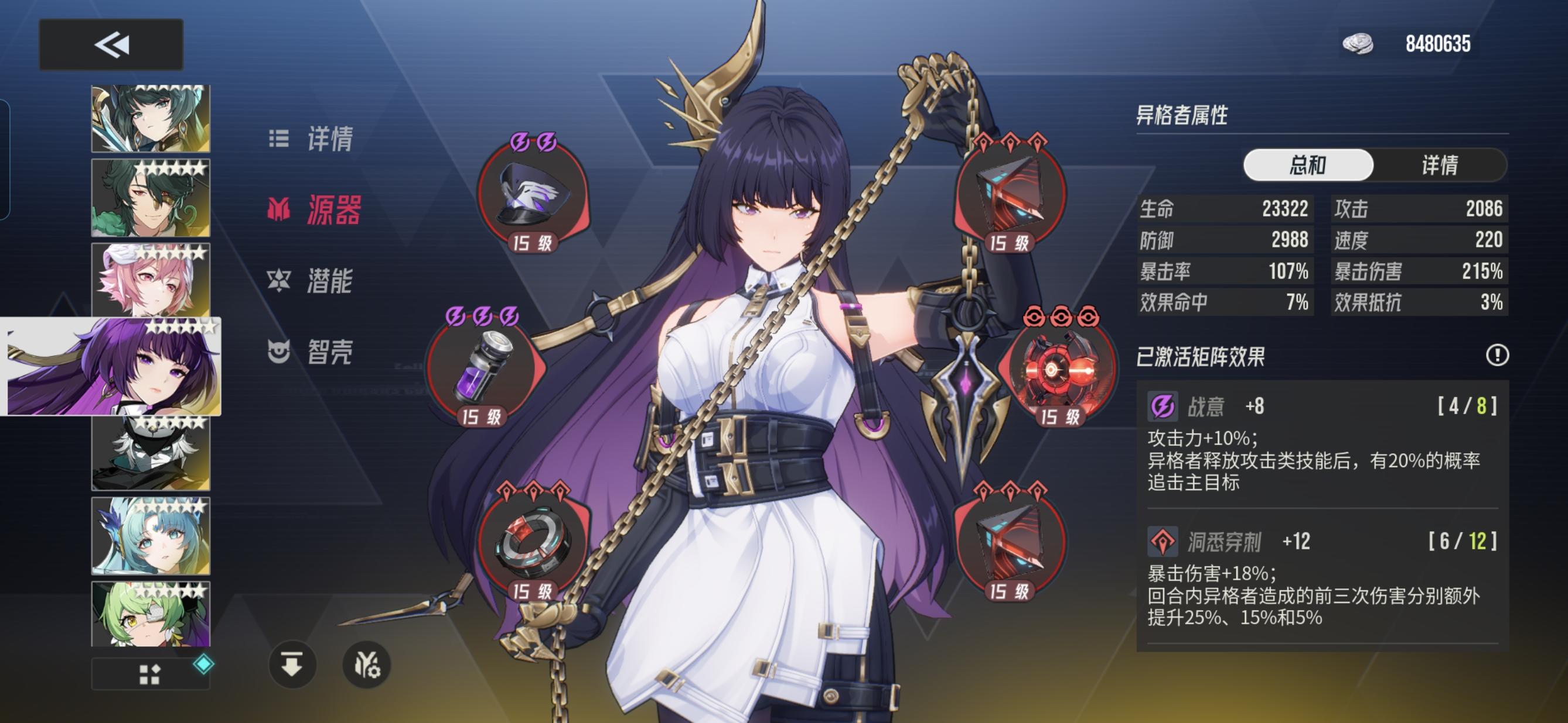 大佬帮我配一下队,现在是,彼安汀,米娅大谛听在一命,这是记忆中的,需要养谁,最右边的副属性双爆,速度,攻击力的这个暴烈核心的源器,但是主属性生命的这个,各位大佬推荐吗?