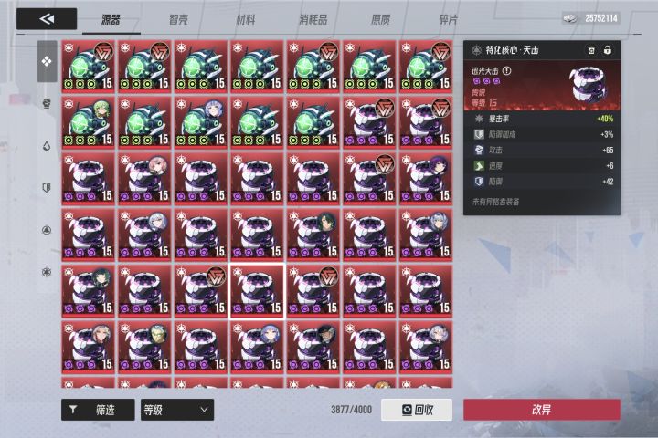 非得手动一个个点升六点升级重复操作几十遍吗,这么多轮双倍了还不出一键升级是笃定我们根本刷不到多少能用的速度坯子吗?一键升六级再筛选绿速以下的源器回收很难做到吗。一直不出这功能是在强制增加线上时间还是嘲讽玩家出不了多少坯子