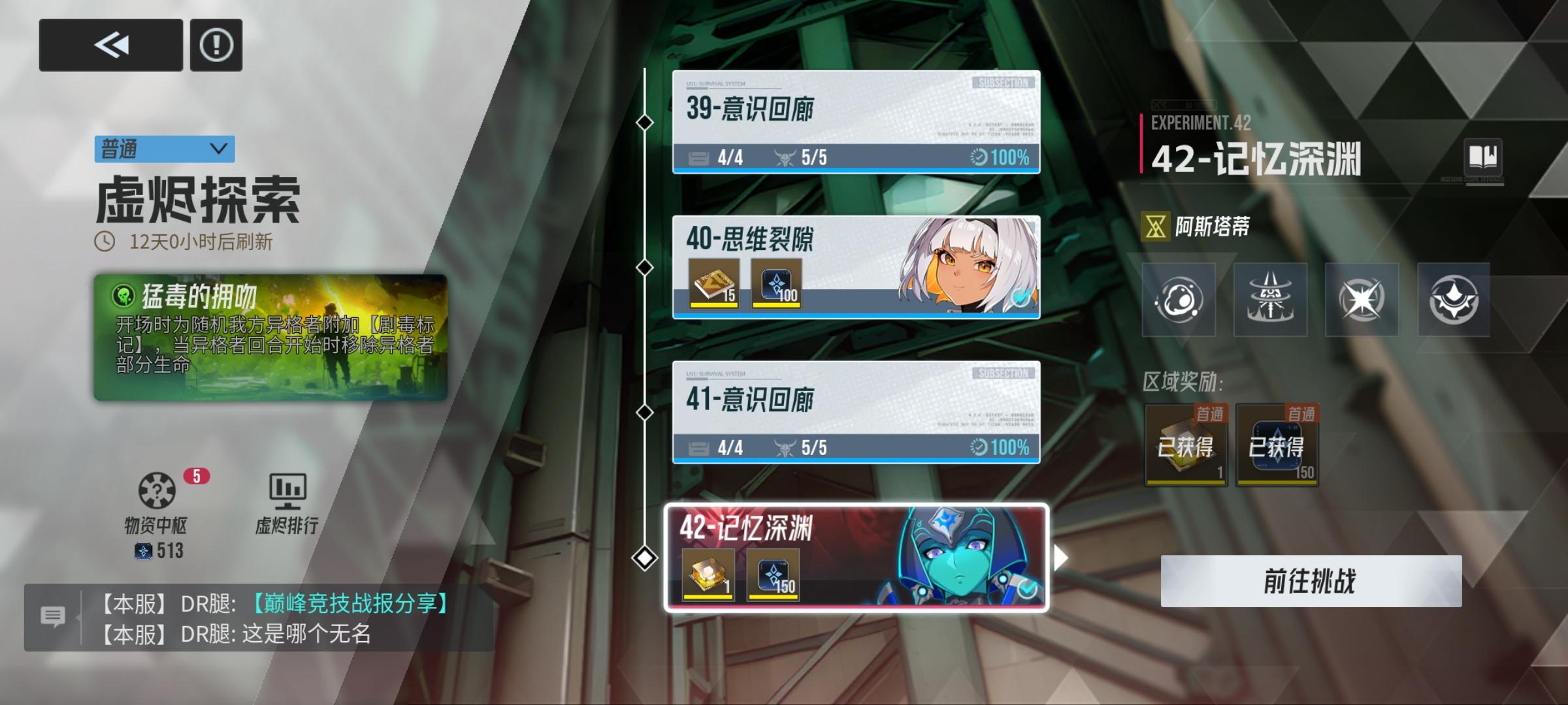 虚烬探索42层打完了,活动任务的42层奖励拿不到