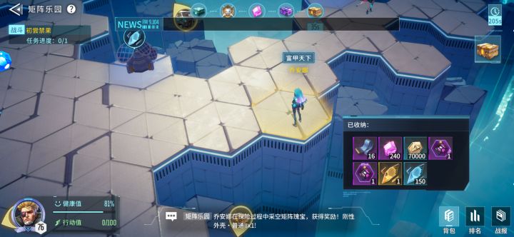 集合pvp,资源采集的一种玩法玩家消耗一定体力匹配或者与队友组队进入一个地图,每个地图上限为三个队伍,每次进入会发放固定耐久值,采集,击杀怪物,抢夺玩家都需要消耗耐久,里面有很多小怪,一个BOSS,各种资源采集点(钻石,金币,晶格碎片,升星流影等),采集到的资源会在一个背包中,别的队伍玩家跟你在一个格子上时可对你发起抢夺,胜利时会夺取对方背包里的一些资源, 进入抢夺时,就可以用提前预设好的队伍