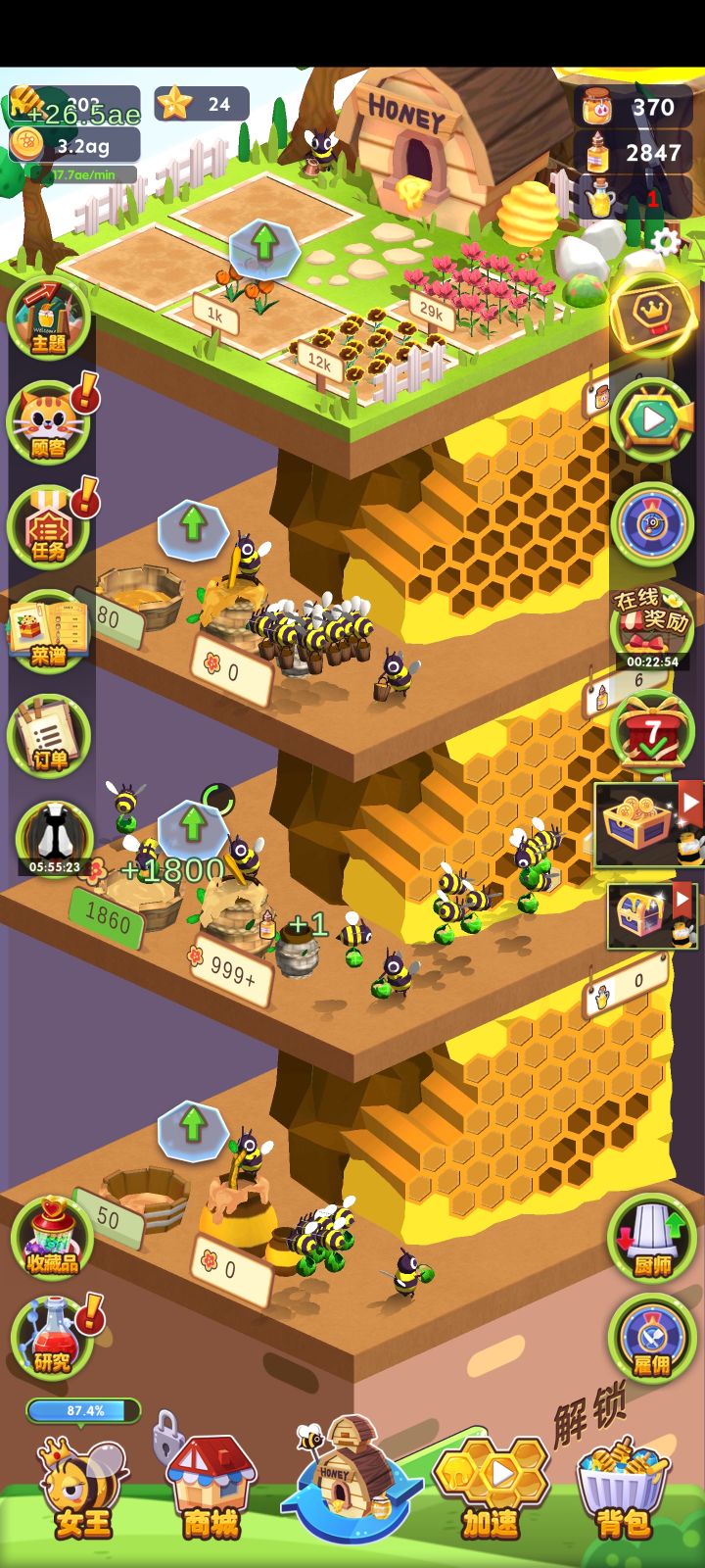 有bug,蜜蜂只采2层蜂巢的蜂蜜别的都没有也不采