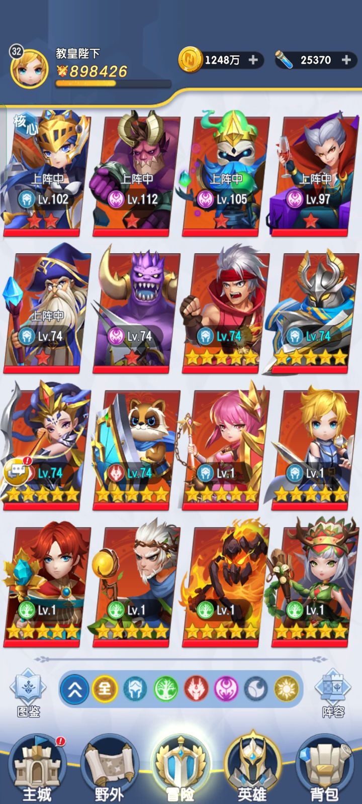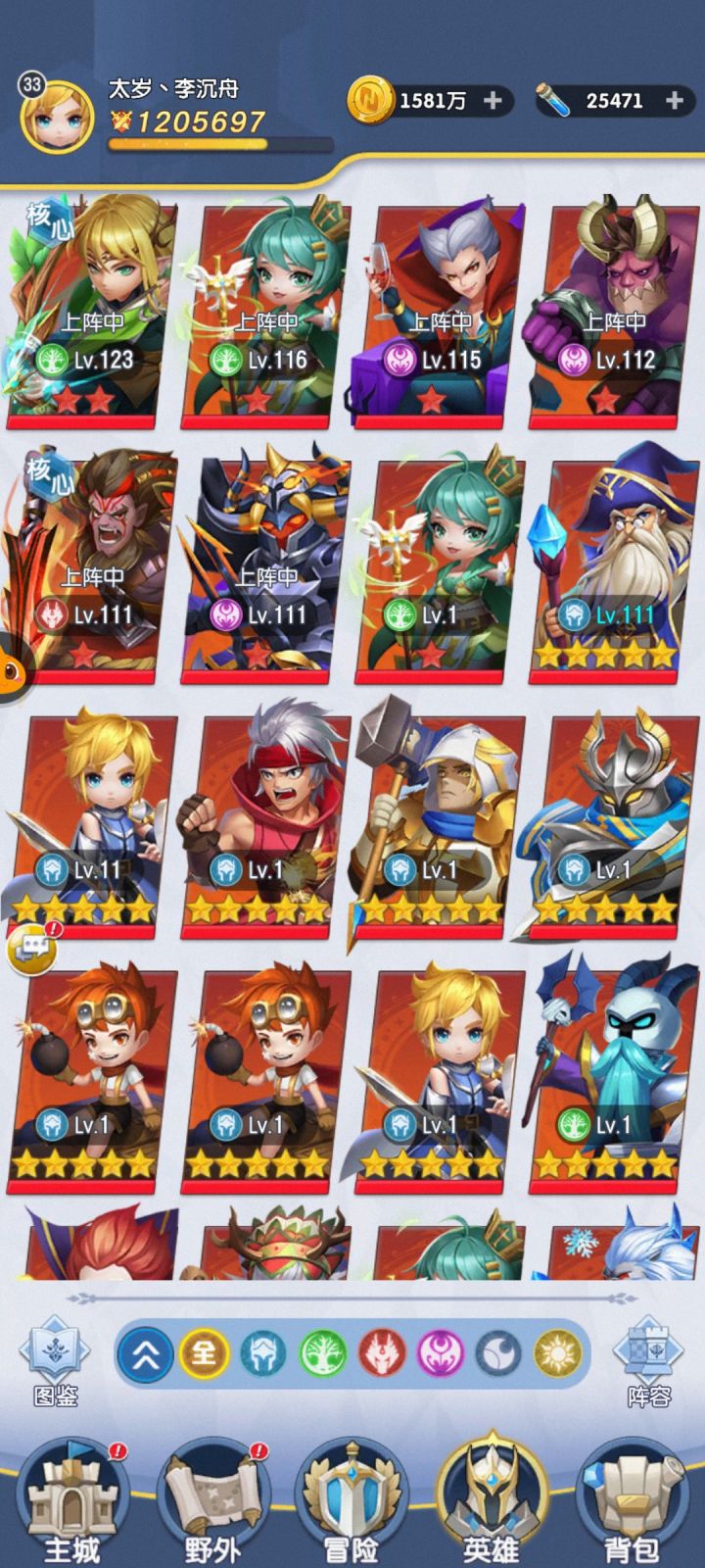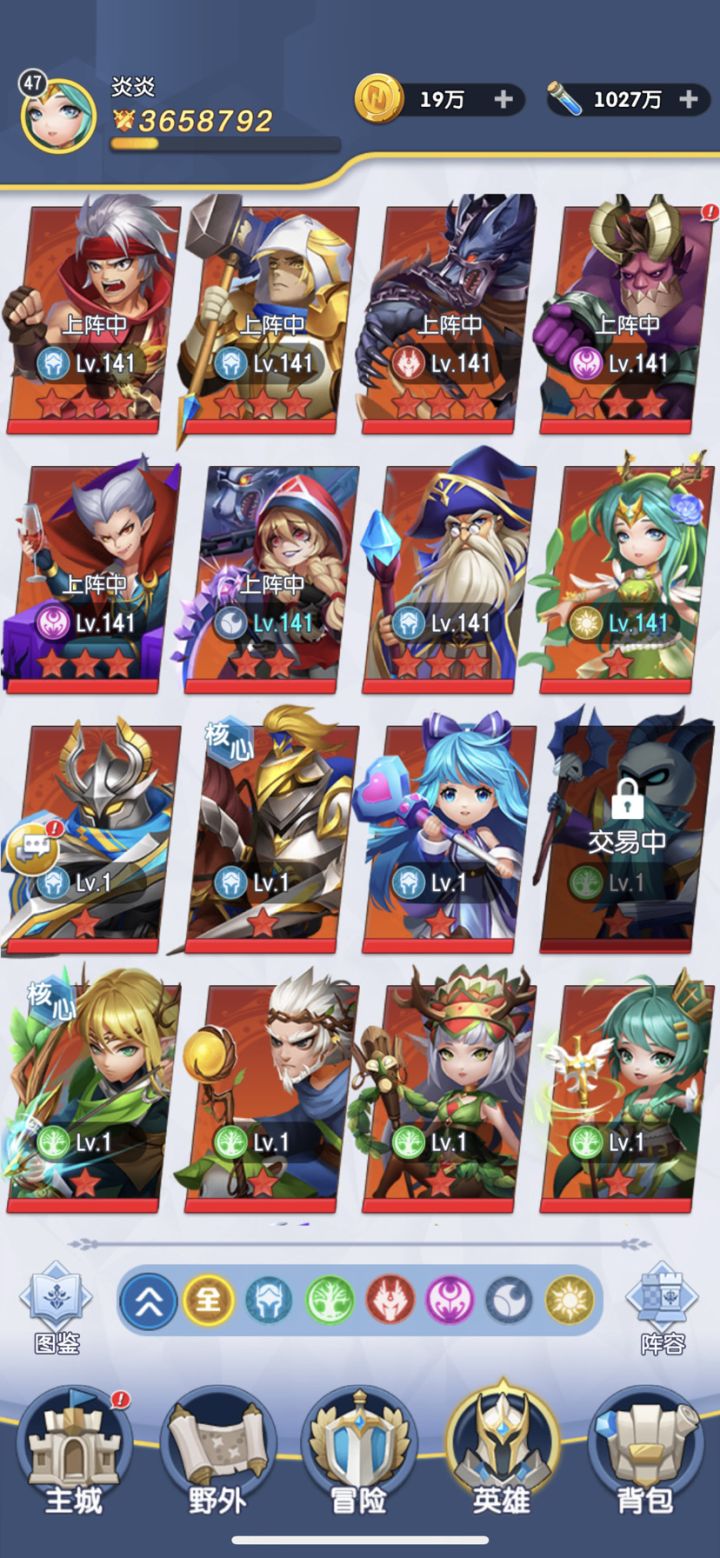 18号晚上玩的21区,今天第七天,说说自己的心得。目前我是大树、王子、德古拉、巫师、法师和狮鹫。都上十星了,感觉双奶妈确实能站的稳,但输出乏力。下一步准备搞小红帽和狮子王,再搞个风行者试试。感觉一定要有切后排的,不让后排奶妈奶量太足,根本打不死。我早上出了个光盾,准备上阵试试,虽然是没升星的白板,但看技能确实可以。恶魔族的死神,看上去很垃圾,不能暴击,没有控制。但我觉得后期应该也会有用,补刀确实很重要。说一下我认为值得练非核心的英雄,人族:武极、法师、皇女、女武神;兽族:小浣熊、美杜莎(兽族没怎么玩,我不是太清楚);自然:大树、花仙、自然之风、德鲁伊;恶魔:巫师、死骑、德古拉、破坏神。就说这么多,以后玩的久一点再说。