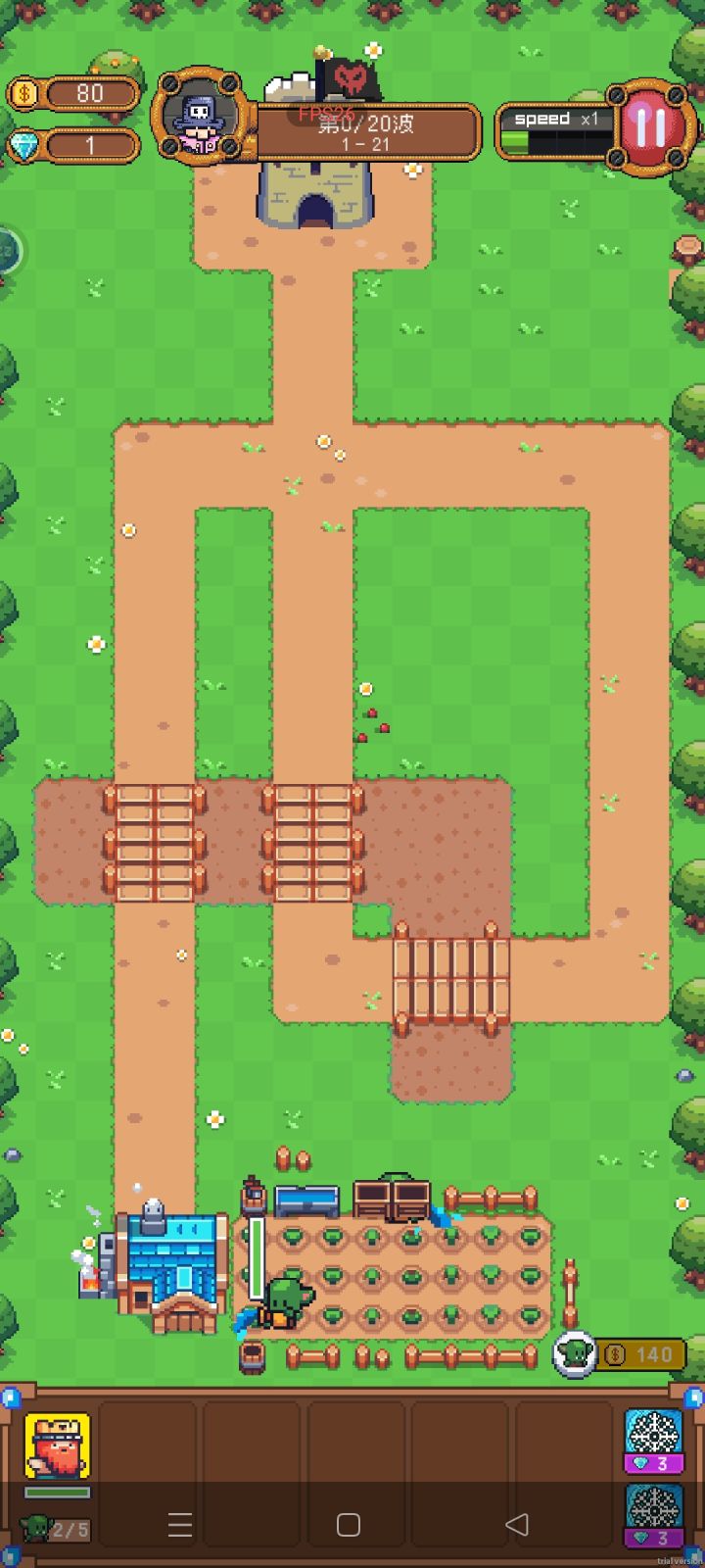 进去21关后有300金币没有农民。买了2个农民后不刷钱也不刷怪