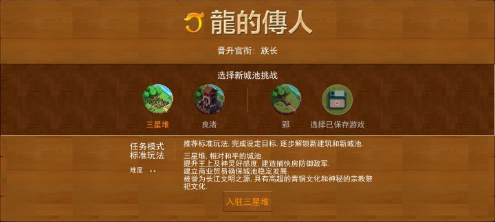 在通关了阳城后,进入选关界面,变成三星堆和良渚了,职位也是族长,怎么回事啊,我还想玩玩另一关的,是不是bug?