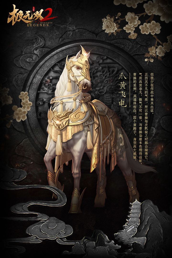 游戏想要玩得好,三国趣事少不了各位将军本周的风物志来了,快来一起看看吧~今天小煮给大家介绍的就是魏武帝曹操的坐骑之一“爪黄飞电”爪黄飞电,作为曹操的爱驹,其高大威武,体态庄严,名字与众不同,气势磅礴,也惟有曹操这样的枭雄才可以配得上这匹骏马。爪黄飞电通体雪白,四个黄蹄子,气质高贵非凡,傲气不可一世。单听爪黄飞电这样的名字便显得气势磅礴,与众不同。正因为此马有非凡的气质,所以曹操一般在作战中