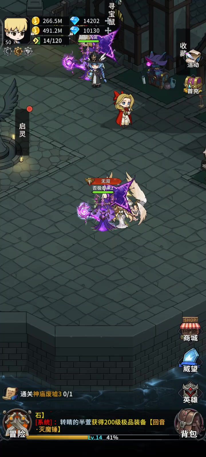 因为没有升到两百换装备,所以打的还是比较吃力血法带的迷惑四件套增加控制概率跟时间黑骑带的2+2+2的力量套值得注意的是需要手动拉怪加快刷图效率然后boss打到半血召唤分身以后,手动释放合击技也取消自动战斗 把boss跟分身拉开一些身位因为boss走的会比分身快没多少血了就放合击技回点血消灭掉分身以后,boss就是瓮中之鳖,轻松能拿下#冒险手册