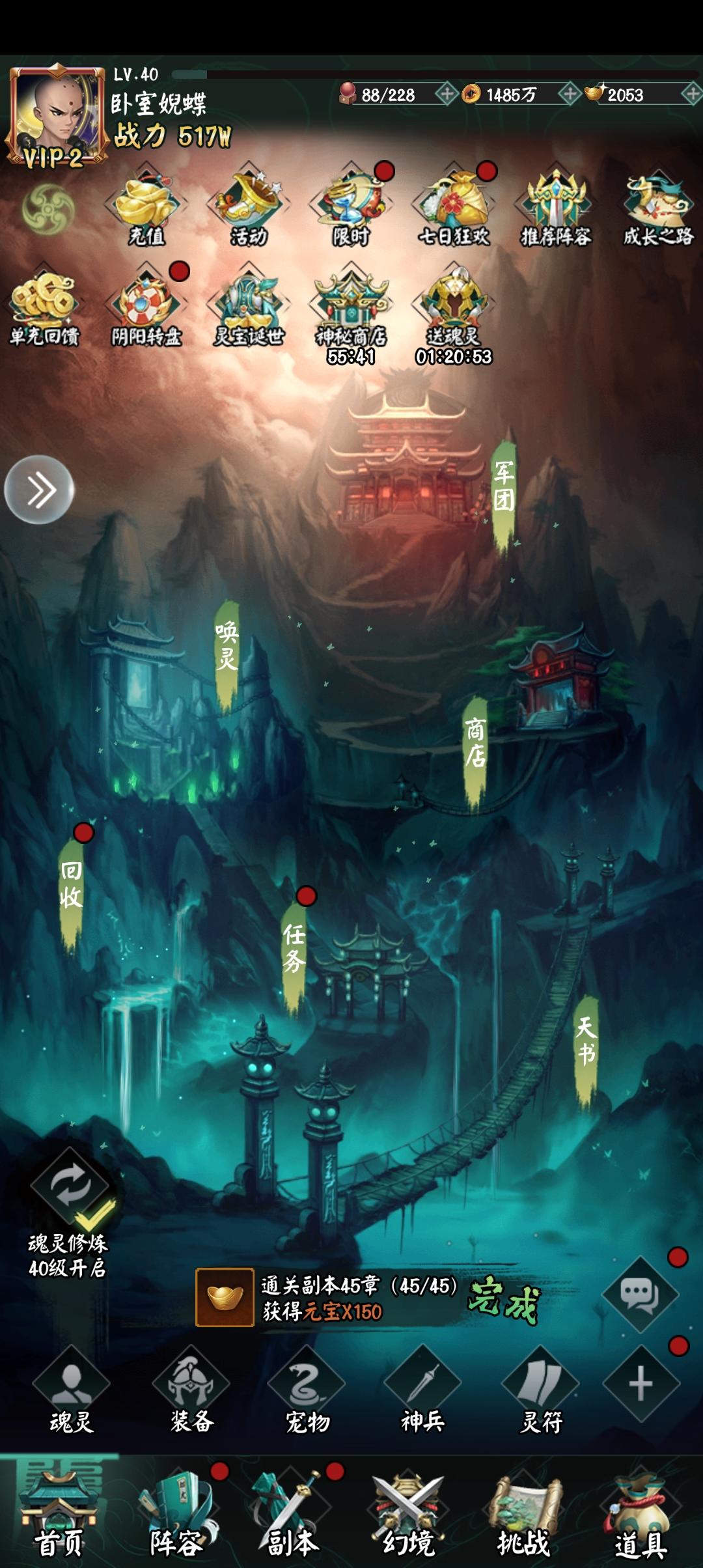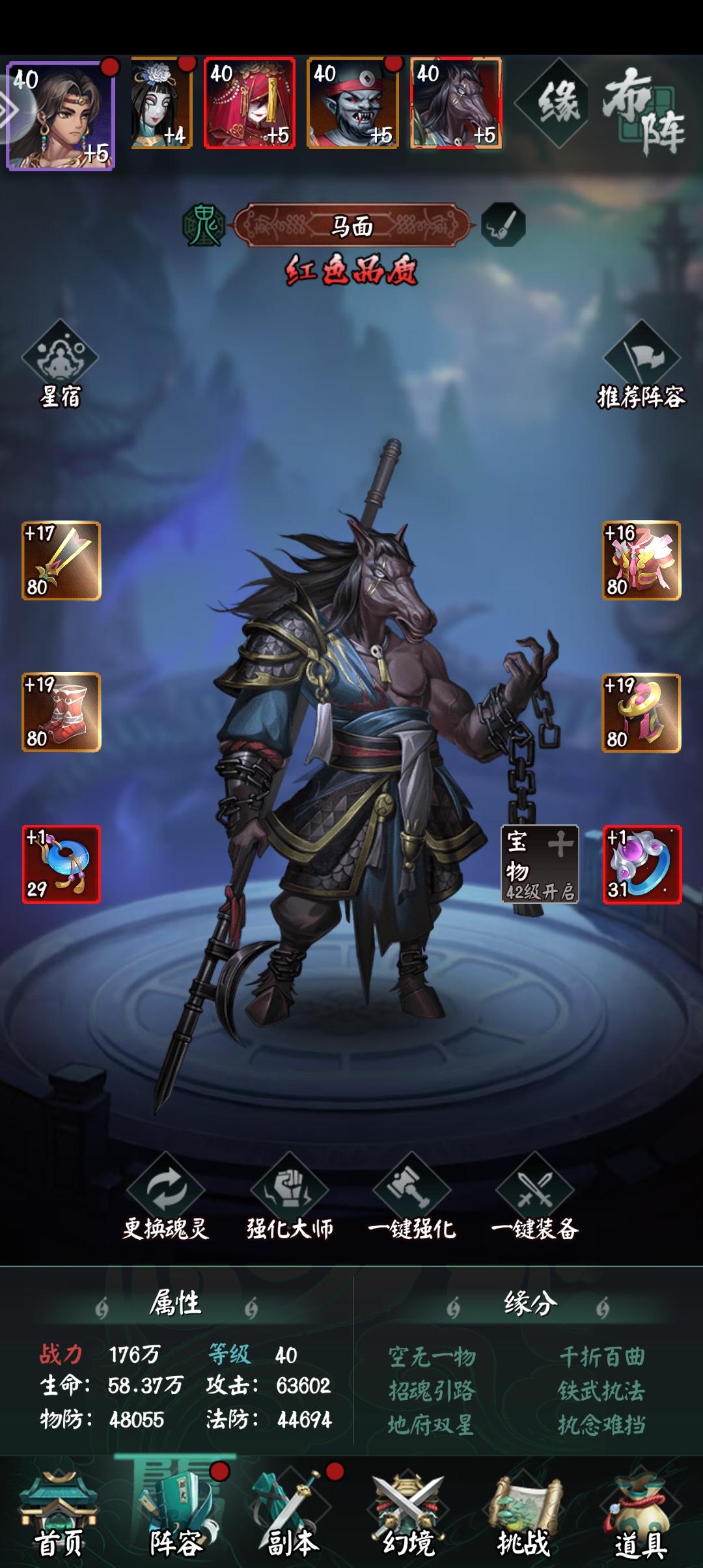 1 如何选择人物(游戏里叫做魂灵)如图所示,这是阴阳界的主页,点击“阵容”(阵容人数多少决定于你的等级,最高六个人),看不惯的点击“更换魂灵”(原软件已删,表达的是这个意思),选择需要的魂灵即可。游戏最开始有萌新指导,这里不再赘述。2 为什么我的魂灵变成渣渣了 最开始你的人物可能骁勇善战,势如破竹,可后面呢?节节败退,为什么?主要原因有两种一 不及时升级魂灵或装备(点击阵容里人物可升级