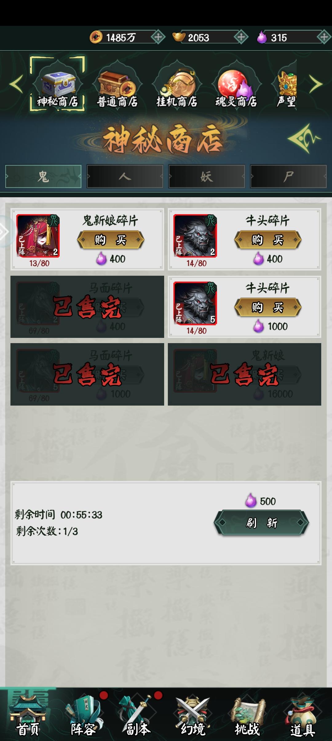 阴阳界游戏偏向于卡牌+回合制,游戏以国风文化及倩女幽魂人物为主,卡牌主要分为紫金、红色、橙色其他卡牌可以忽略。目前紫金可以参加活动获得无法抽卡获得,最多能抽到红色卡。所以对零氪来说红卡才是主流。目前各阵营红卡只有三个,所以要全部上阵,鬼族的红卡分别是鬼新娘,牛头,马面。鬼新娘除了突破天赋,属性技能与其他阵营相同牛头作为鬼族的dps主流输出,重点培养马面,鬼族主流mt,肉度有目共睹,尤其突破