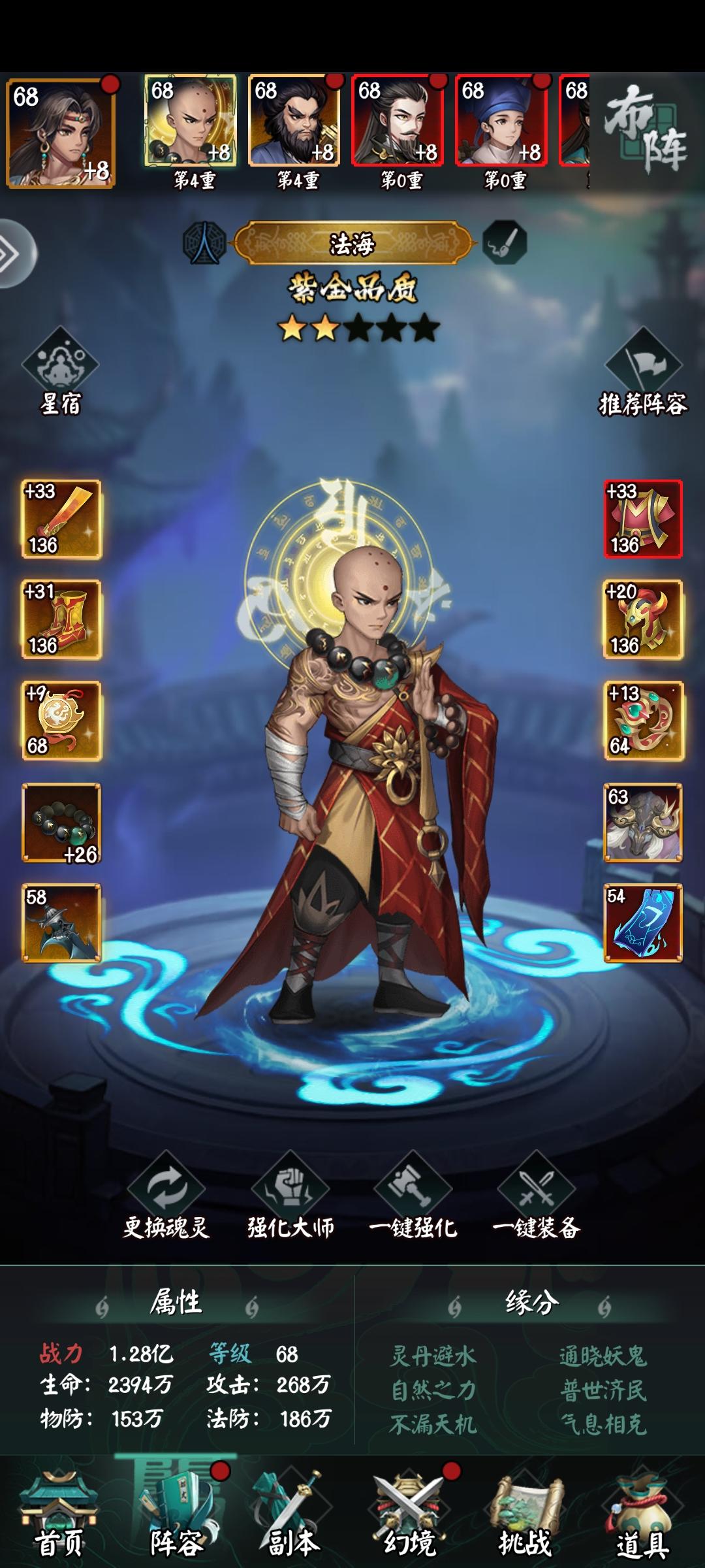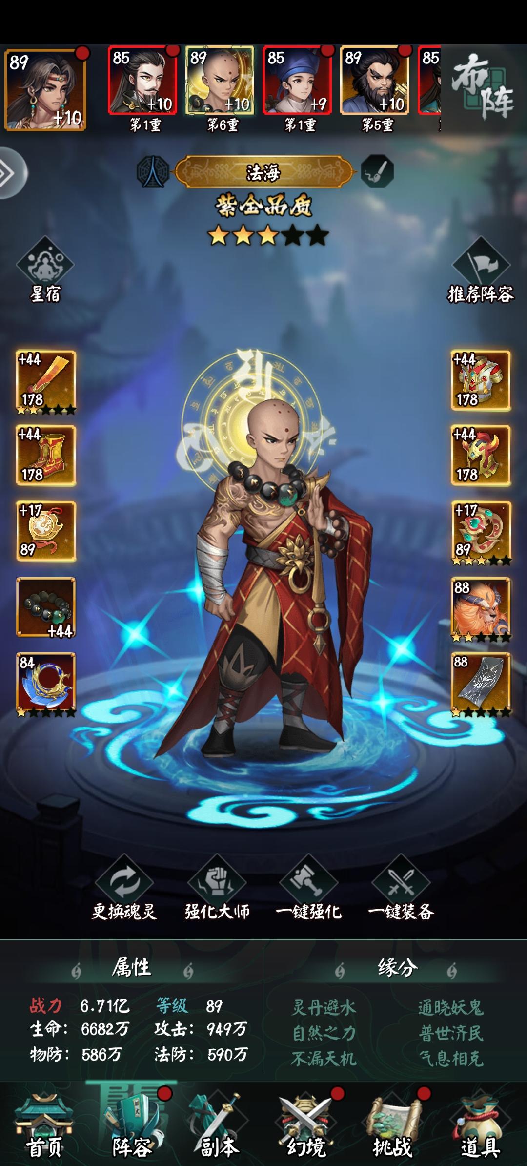 2022-12-22 打卡第九天s51水乱流主角法海还差三个格子就全紫金了 感觉这游戏给的资源获取太少了 一个角色都培养不过来