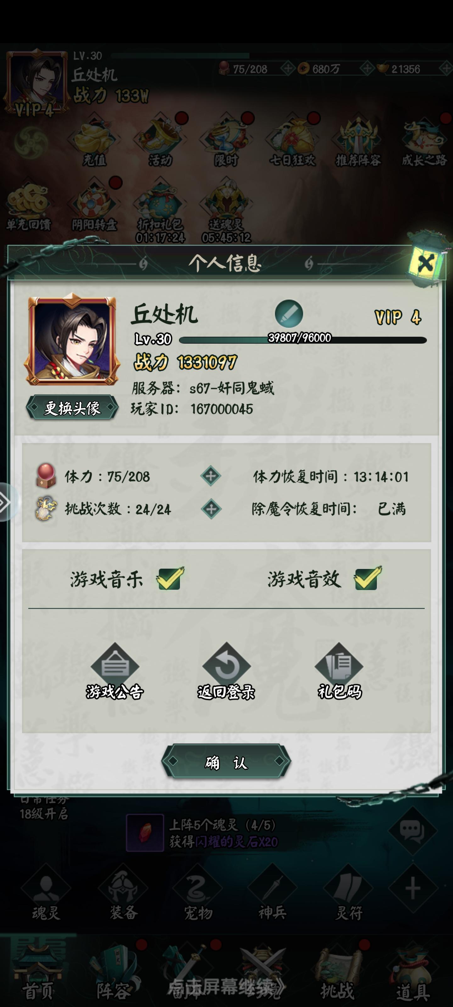 Taptap S67 丘处机 2022.12.23 打卡第一天,换新区重新体验一下😁