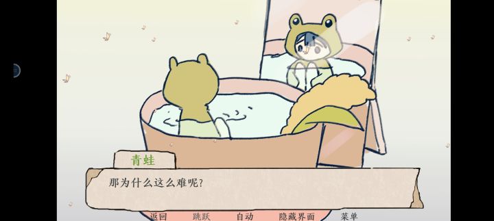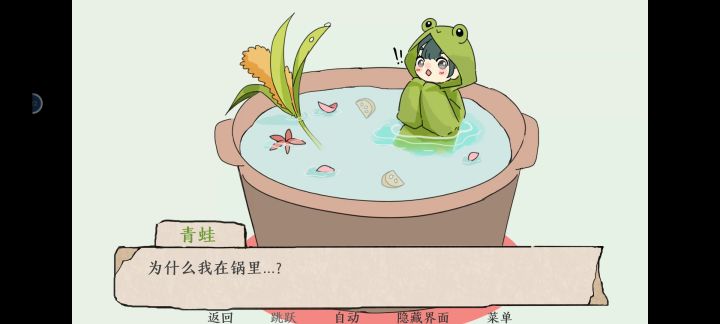 谢谢!!!对于我来说,意义不仅是救助了“青蛙”,而且真的让我有在思考,思考自己是否也在那个锅里。就算现在来说,我也很希望自己有所改变,像“青蛙”一样。最后很开心,感谢作者送出的祝福,真的会让人一下子感受到温暖与感动,很感激能玩到这样“锅中”一样的温暖放松的游戏(ˊ˘ˋ*)♡再次感谢。