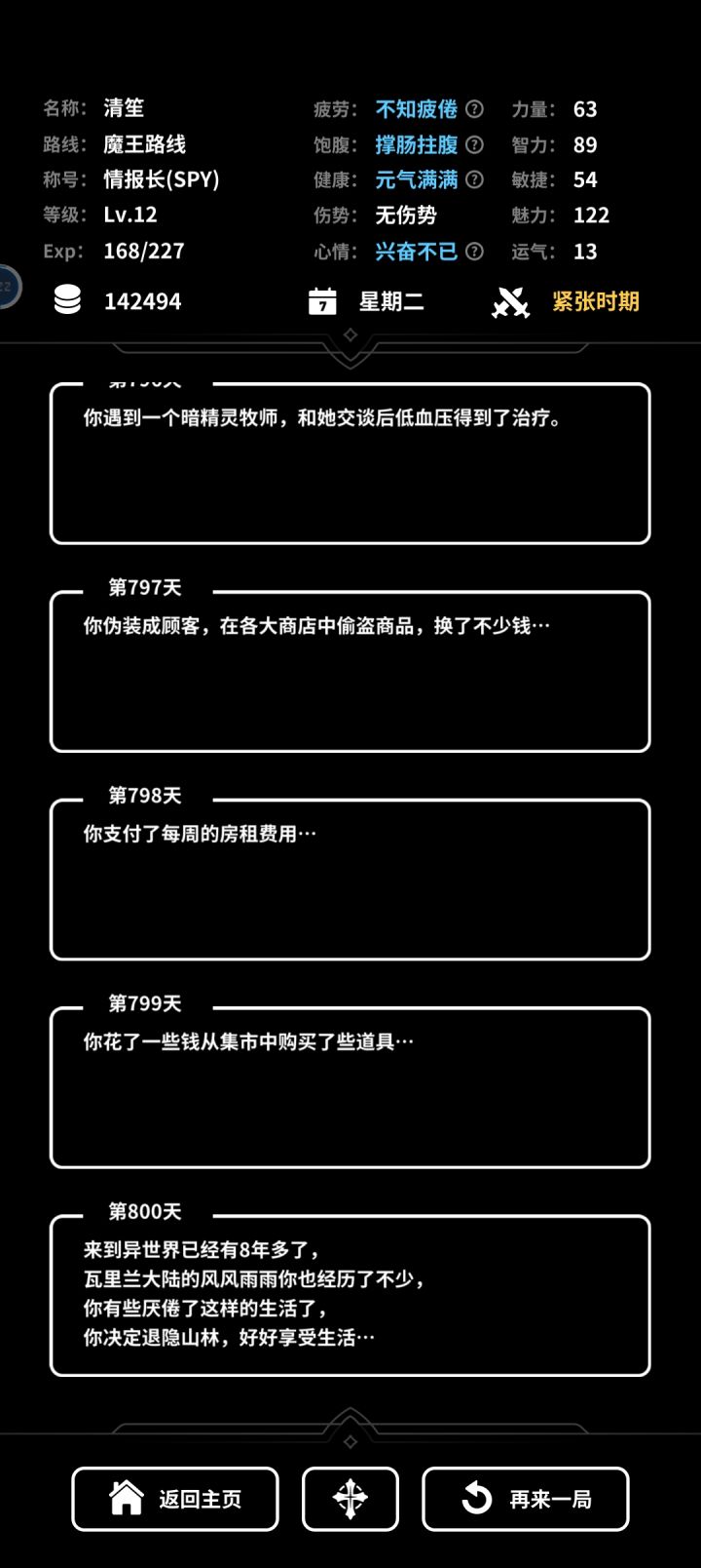 买卖真的好烦,有没有一键买,加个锁定物品吧,加属性的物品一下不注意就卖了,魔王路线加了个不会受伤而亡加了个不知开局不知疲倦,偶遇真的太随机了,反正就是和平时期买买买,紧张时期打工乱逛,战争时期卖卖卖,卖完乱逛打工,到了战争时期结束又是买买买。