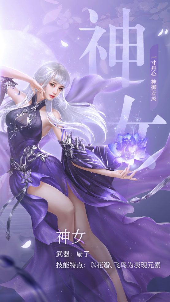 神女自幼便有强大的御灵之力,在机缘巧合之下拜入昆仑门,以手中灵扇为武器,召唤飞鸾神灵追随左右,以一寸丹心,御尽天下万灵。想要修习神女的上仙们可仔细详读该职业的技能——惊鸿扇>>>连续攻击4次,对最多4个目标造成共计500%的伤害(对玩家为单体伤害)。花舞倾城>>>对以自身为圆心,半径5米内最多4个目标造成375%的伤害以及340点额外伤害。风起霓裳>>>对前方7米扇形范围内最多4个目标