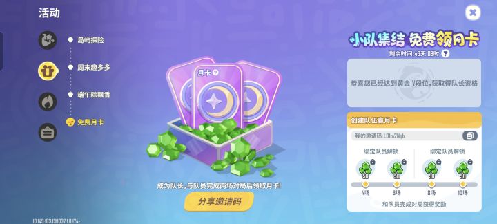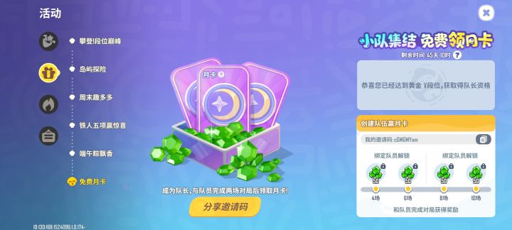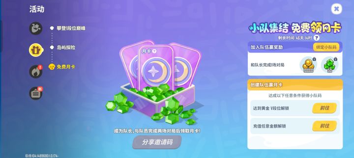送你一张免费月卡,快来加入我的小队