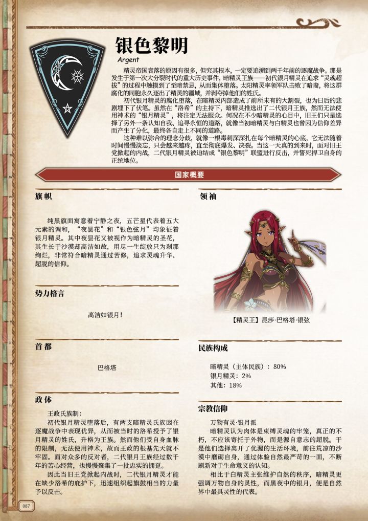 ——高洁如银月!【更新批次】:第二十二期【更新日期】:20220916【更新篇幅】:艾尔兰斯编年史(已完结)——帝国风云录(完结)——第二次大分裂时代(更新中)——???【前方高能】:①银色黎明的政体与文化。②祭礼歌姬,昆莎。③徘徊于叹息之墙的孤独灵魂啊,愿你们的永眠得以安息。