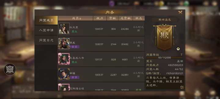 一群热爱三国文化的人,聚在一起,快乐地游戏是牵绊,是炙热,是友情,是交流;我们非常欢迎游戏中的独行者、有爱者、狂热者可以加入我们,一起享受这份持续的温暖;小小的我,有大大的梦;一群玩家,靠的是团结、众志成城,不断地创造着自己的奇迹和故事(就像我们民族一样,伟大自强,生生不息,聚萤成光)我们的战力远不如前三,甚至相差多倍,但我们的意志是钢铁的存在,坚毅的面对前路的阻碍,从不退缩,毫不放弃,